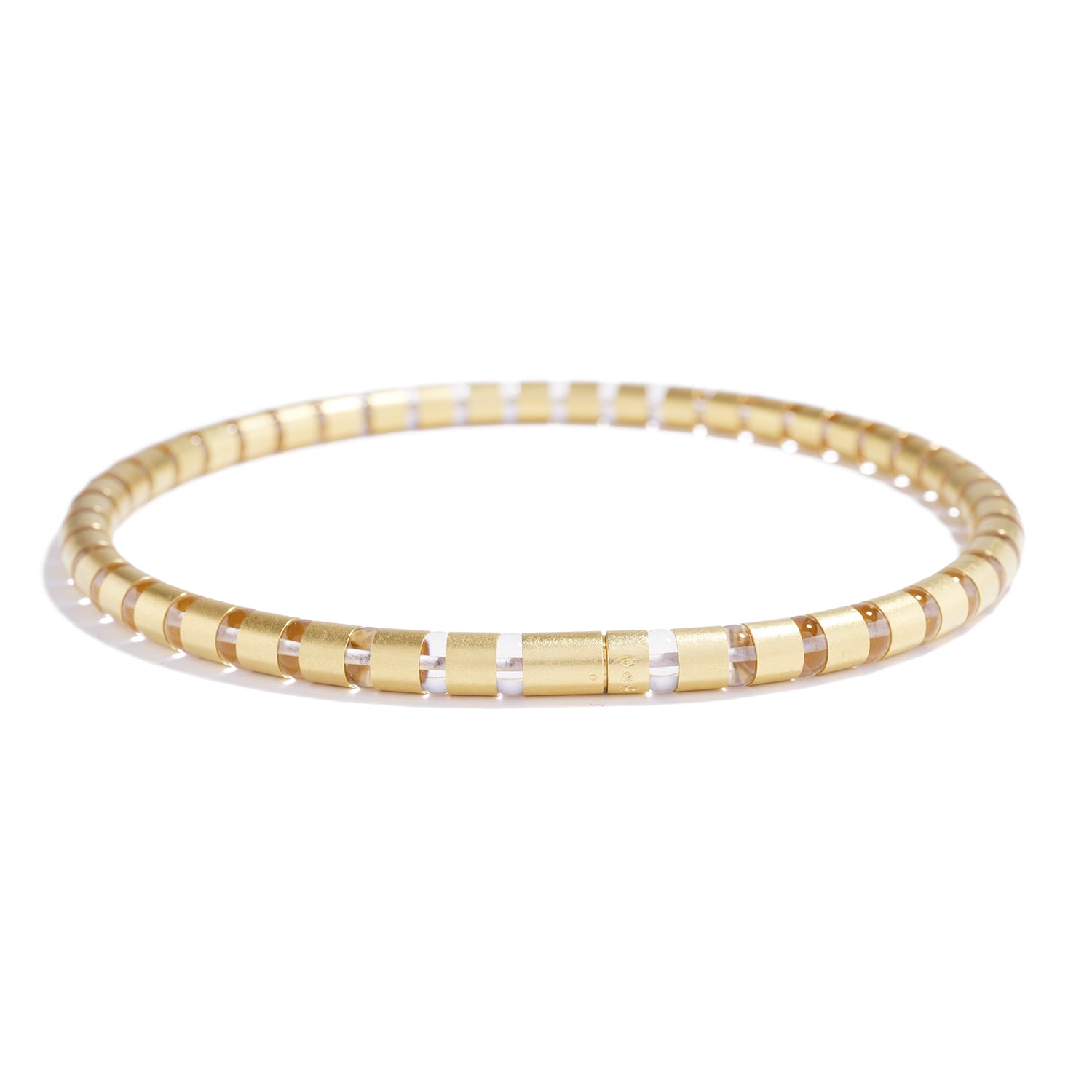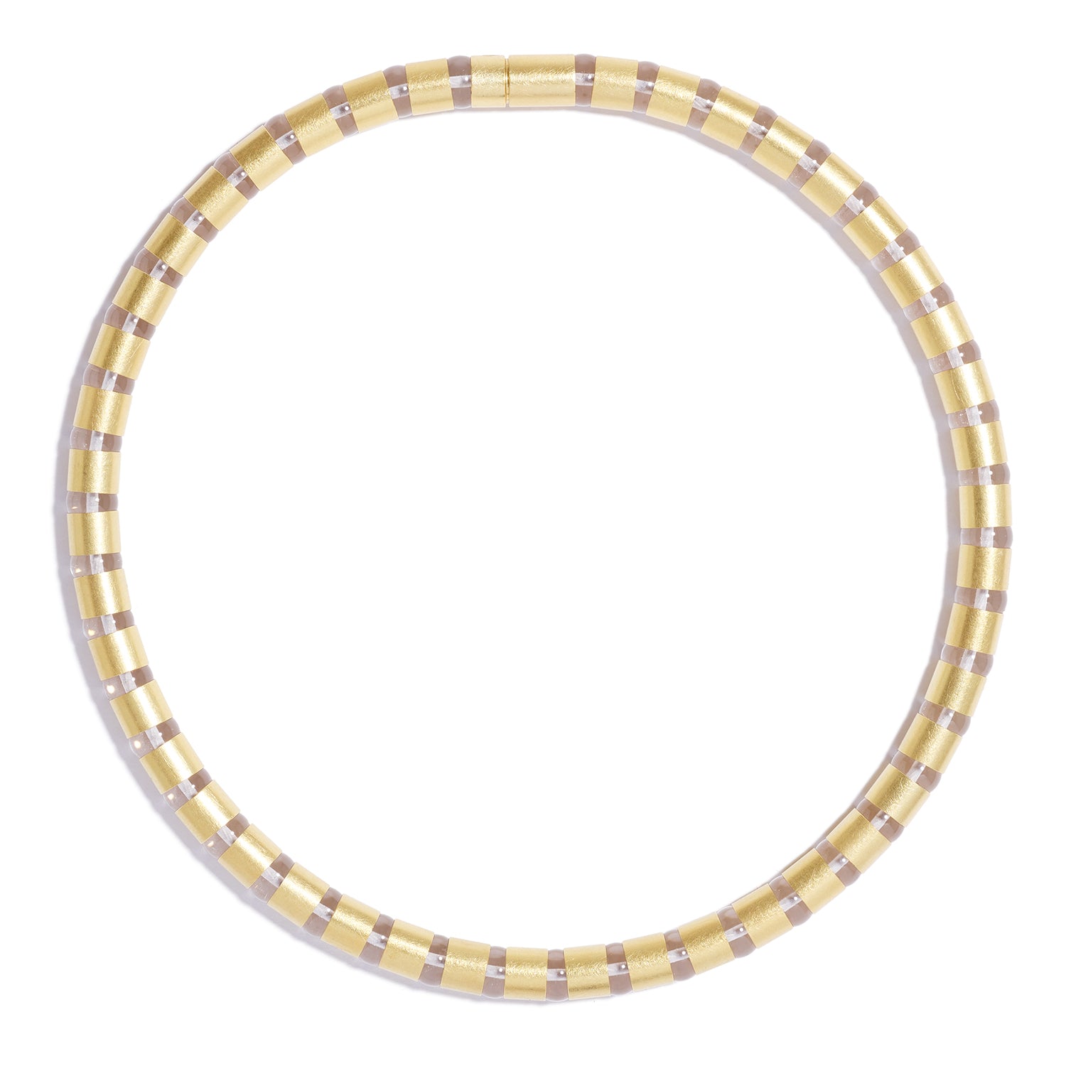 With the look of ancient jewelry that might have adorned the woman they’re named for, Erich’s Cleopatra necklaces evoke another time. Like his pods, they’re sleek and architectural, but in a completely different way. Combining precious metals with gemstone material, these necklaces call to mind the symmetrical, clean lines of Egypt. Glamour from another age, created for this one.