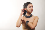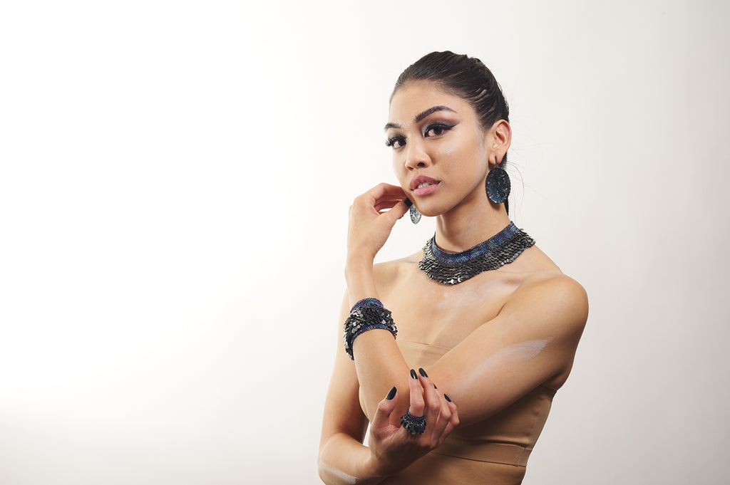 As shown with: Shake Necklace II, Shake Ring, and Large Scalloped Earrings with Glass.