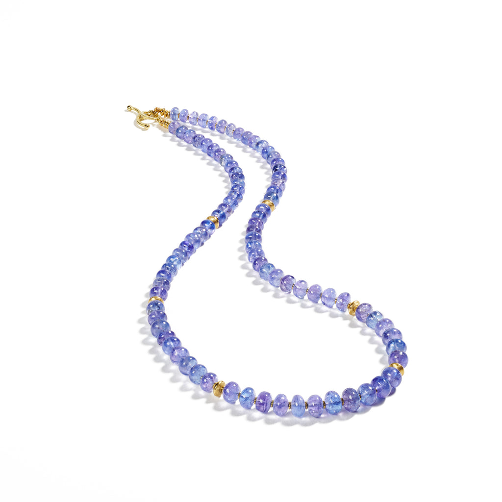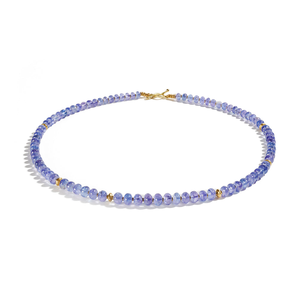 18K yellow gold, smooth tanzanite rondelles 101.74 cts total weight