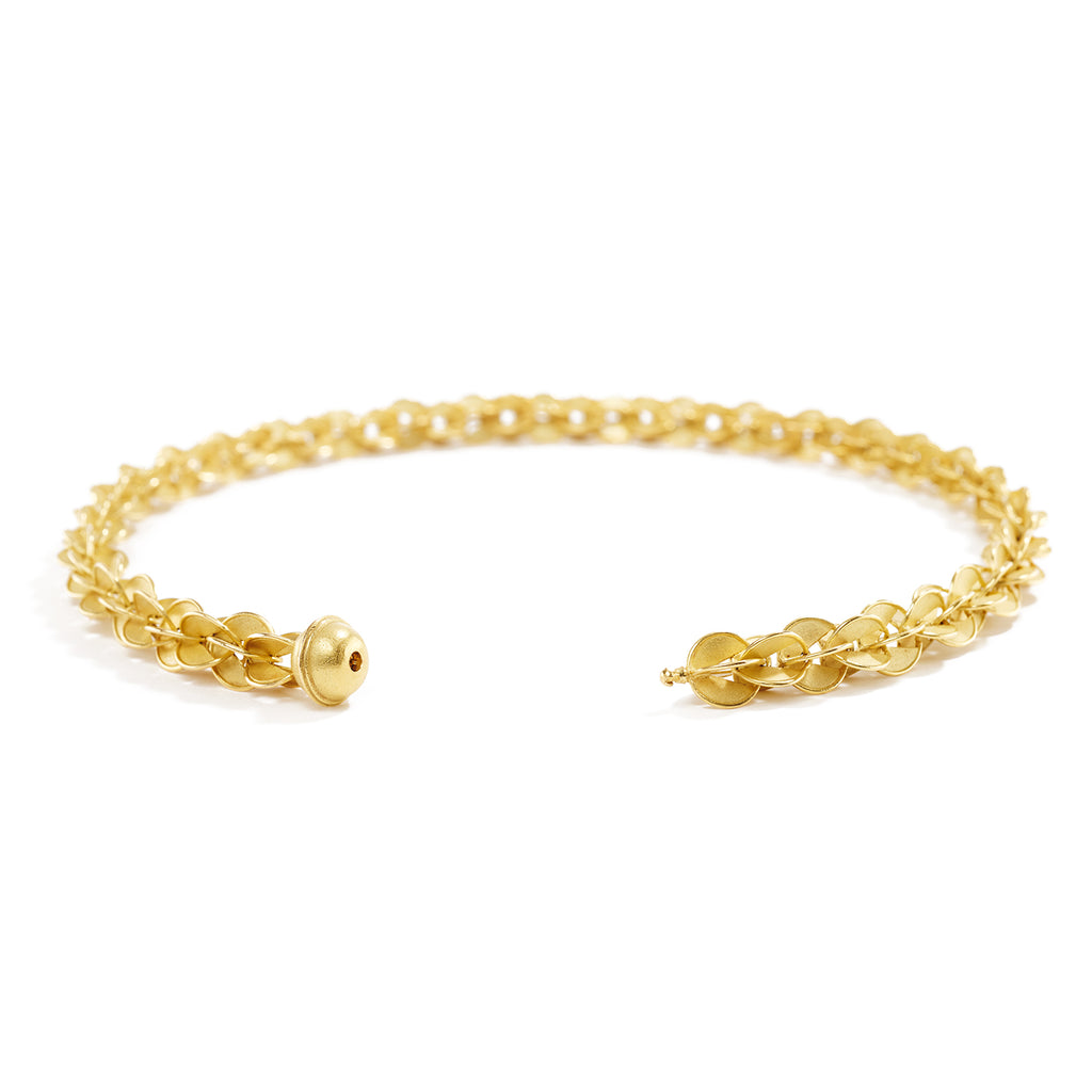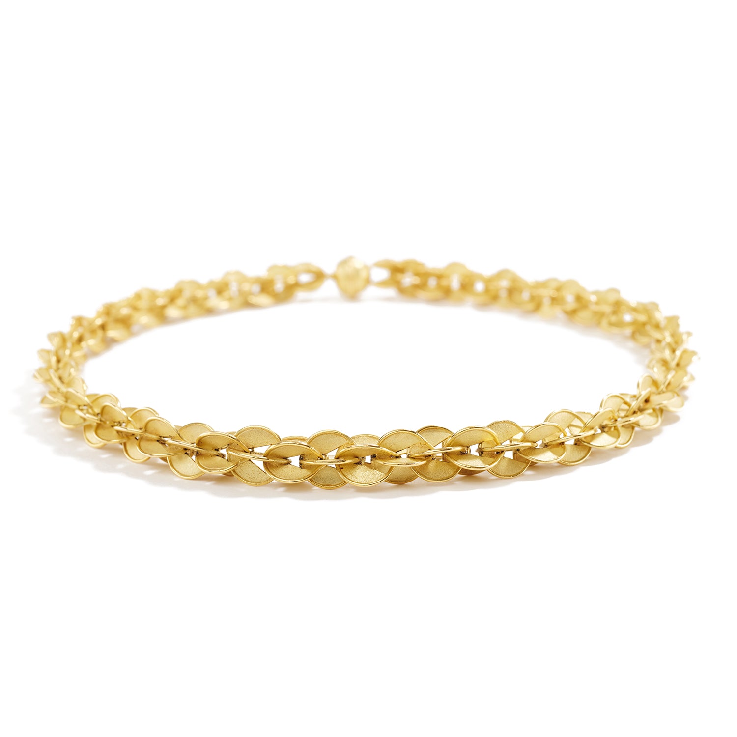 This classic interlock necklace by Barbara Heinrich withstands the test of time. Around your neck, this work will drape with unparalleled comfort and opulence. Using masterful technique, Heinrich creates individual golden spheres that perfectly link with one another in a lustrous ensemble. Echoing her fascination with nature, the artist marvels at the organic vivacity of curves and softened shapes to compose a measure of radiance for the body. Its inherent beauty rests on a sense of balance, great proportions, and timelessness. Adding this brilliant composition to your collections will give you many years of pure enjoyment.