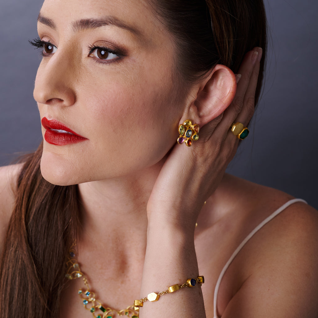 As shown with: Symphony Necklace and Faceted Emerald and Textured Ring.
