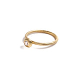 This sweet design by Petra Class is a bright representation of simple elegance balanced with the stunning presence of an exquisite diamond, set in high karat gold. Traces of the maker are beautifully etched on the band, as you feel the textures and see the varied reflections of the precious metal against the light. Instantly breathtaking, this eye-engaging piece is sure to delight.