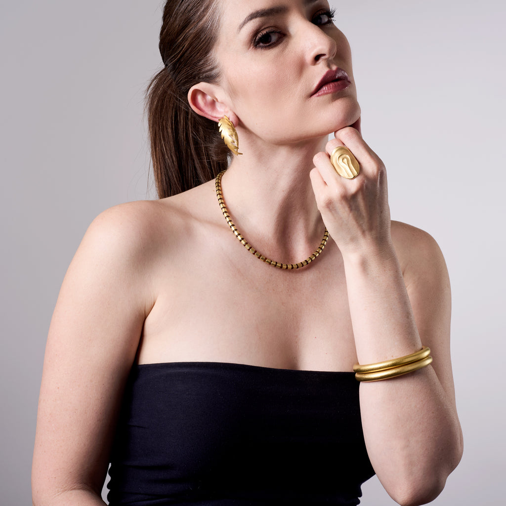 As shown with: Cleopatra Gold Collier~5mm Carnelian, Gold Shield Ring, and Gold Eternal Bracelet ~ 8mm.