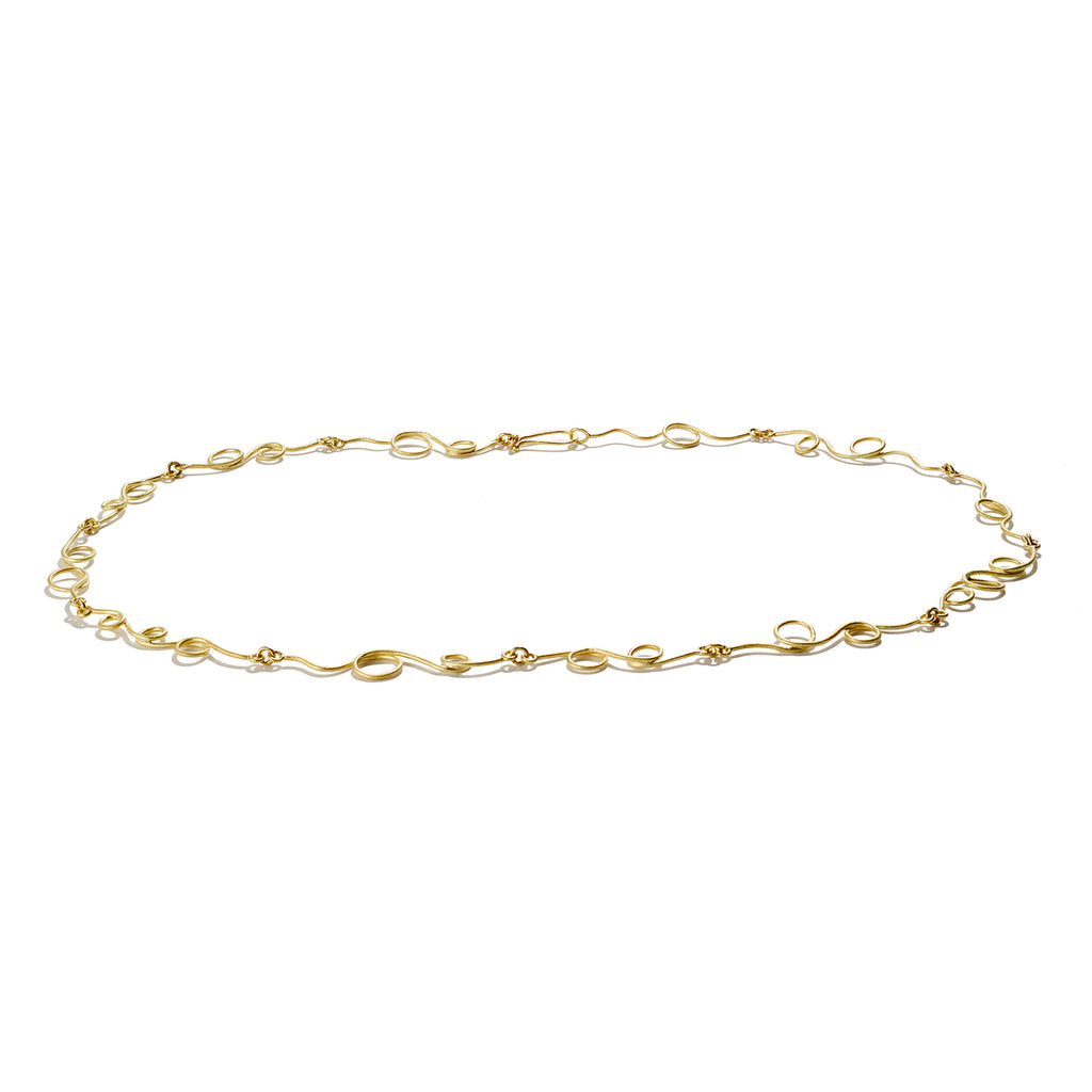 Hand-forged in rich 22k gold, this sculptural scribble necklace features Petra Class’s signature fluid lines and a secure hook-and-loop clasp. Artful yet minimal, it stands strong on its own or pairs seamlessly with one of Petra’s drop pendants for added depth.