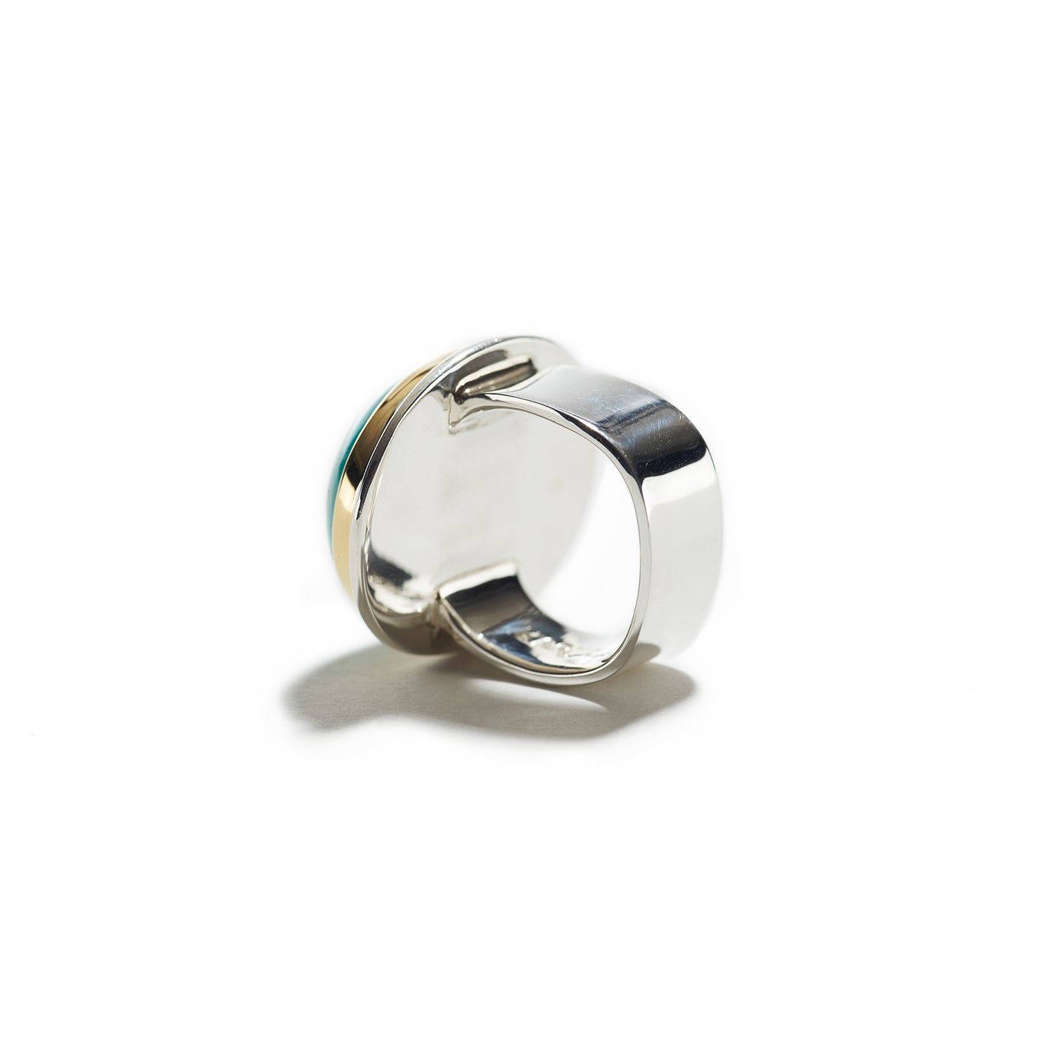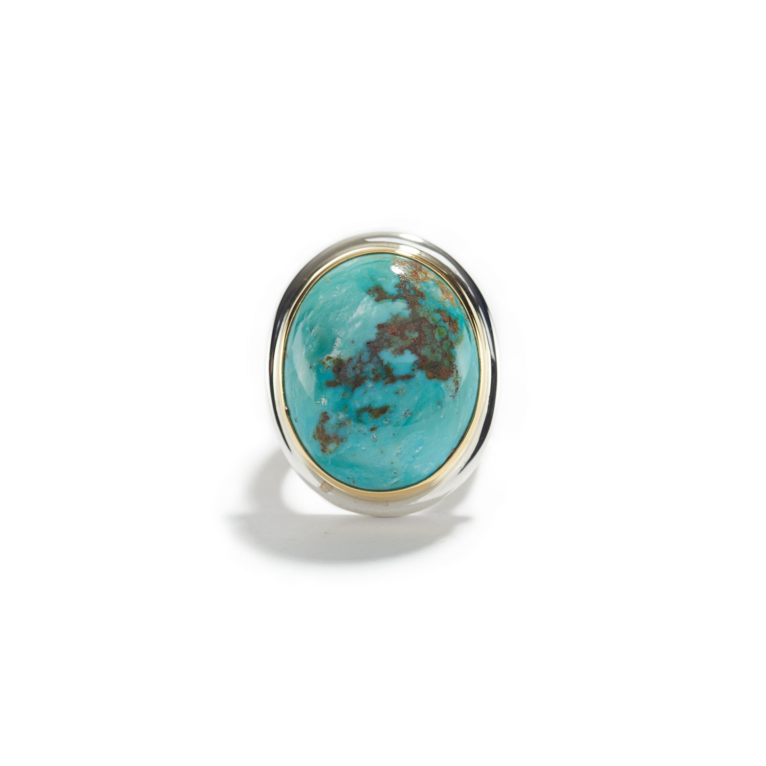 Fox mine turquoise, 22K yellow gold, sterling silver,