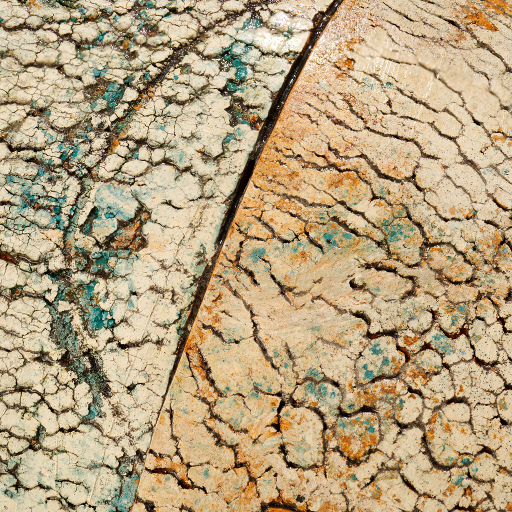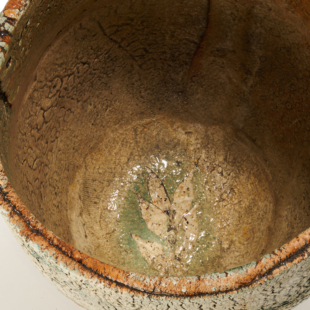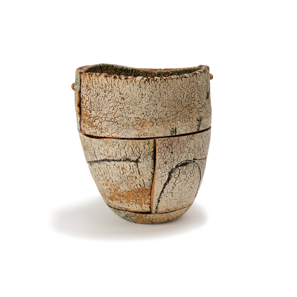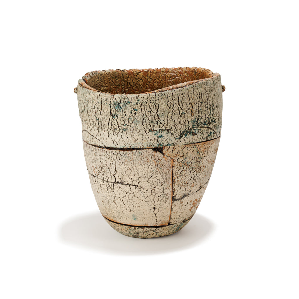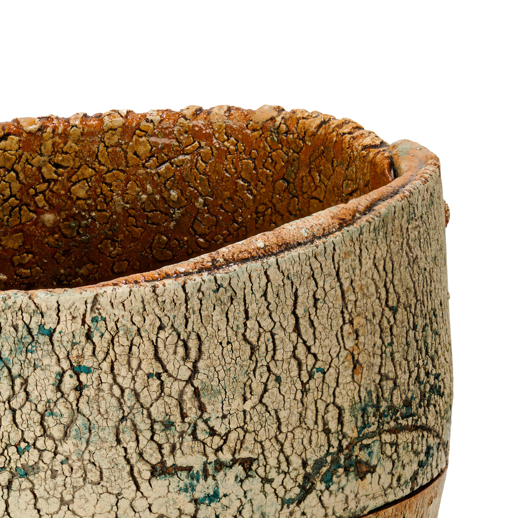 Working in earthenware, Jim Kraft coaxes form from clay with coiling and slab-built gestures, allowing each vessel to bear the quiet imprint of the hand. Irregularities are not erased but honored—soft traces of touch that turn imperfection into poetry. His surfaces, washed in burnished earth, whispering blues, and ghostly oxide whites, feel like artifacts conjured from the soil of memory. There is no glossy veneer—only raw, tactile grace that beckons both hand and eye. In Kraft’s world, texture is a language of reverence. Each vessel becomes a hushed offering to time, process, and the soulful beauty of what is made by hand.