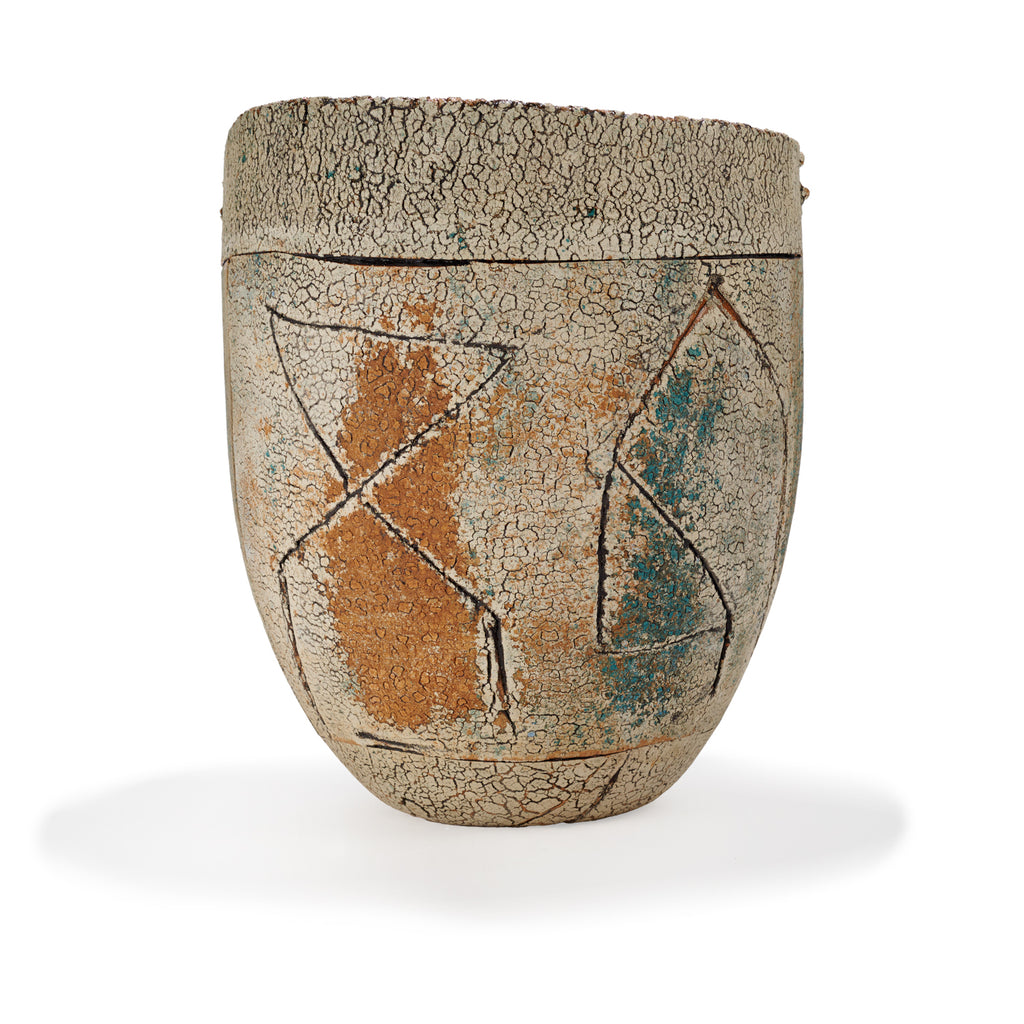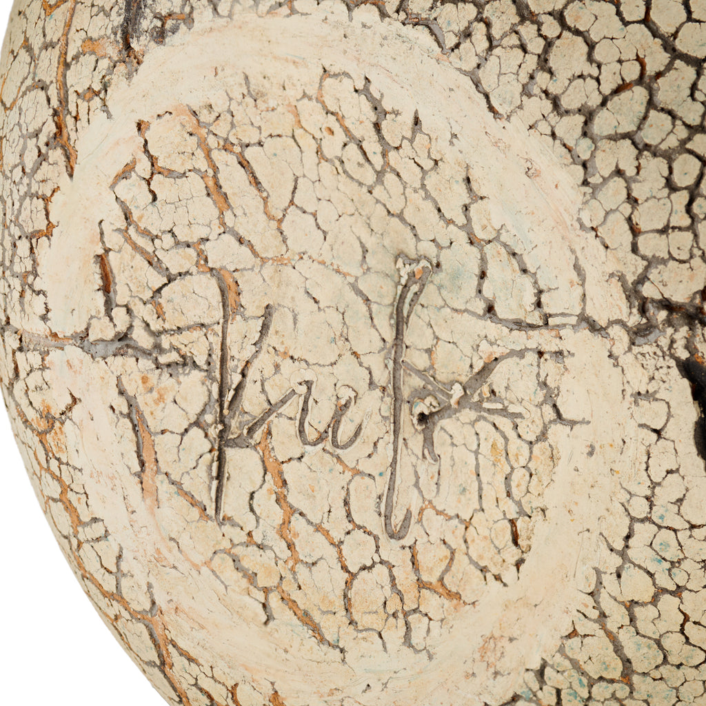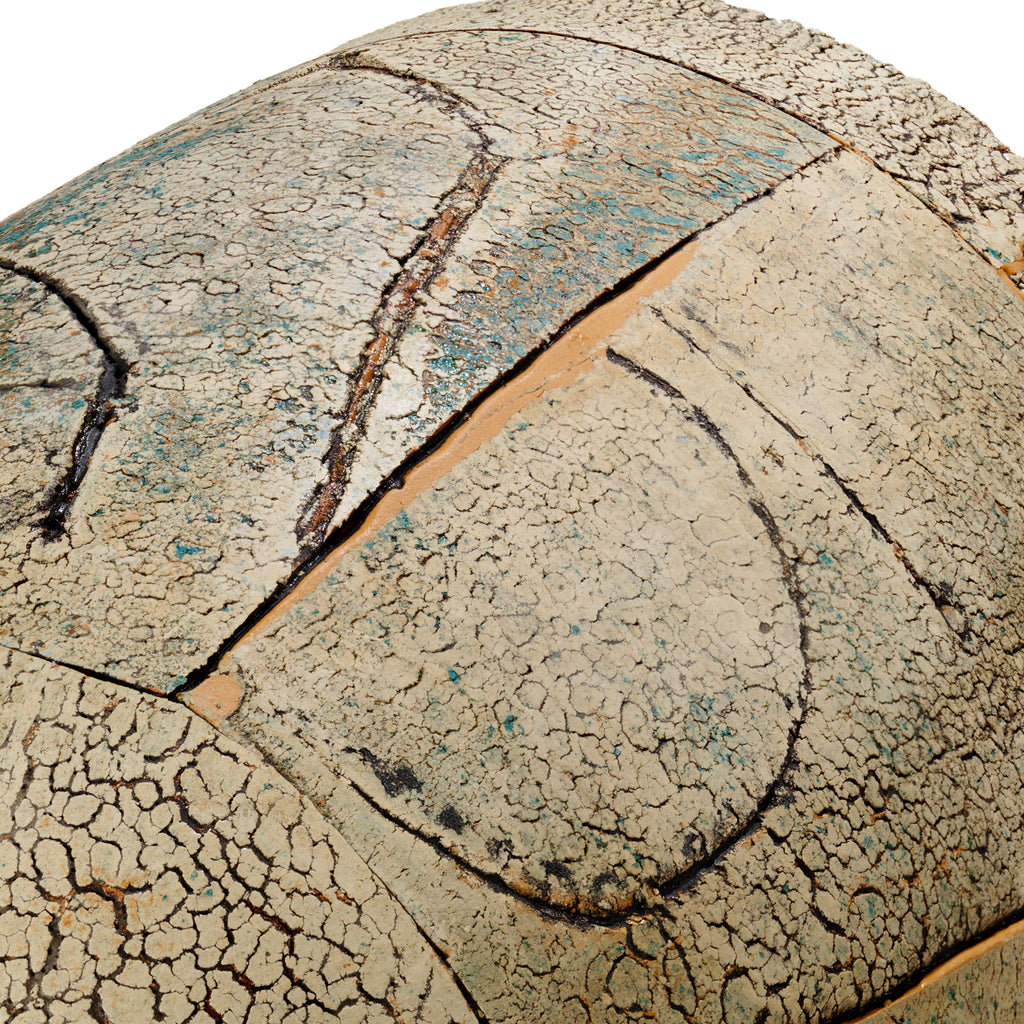 Working in earthenware, artist Jim Kraft hand-builds each piece through coiling or slab construction, allowing the natural irregularities of the process to remain. These subtle marks celebrate the presence of the maker, transforming imperfection into poetry. His surfaces—burnished earth tones, soft blues, and oxide-washed whites—evoke relics unearthed from ancient sites. Rather than polished refinement, his forms offer a raw, tactile elegance. They invite touch and contemplation, blurring the line between object and experience. In Kraft’s hands, texture becomes memory, and each vessel stands as a quiet monument to time, process, and the beauty of the handmade.