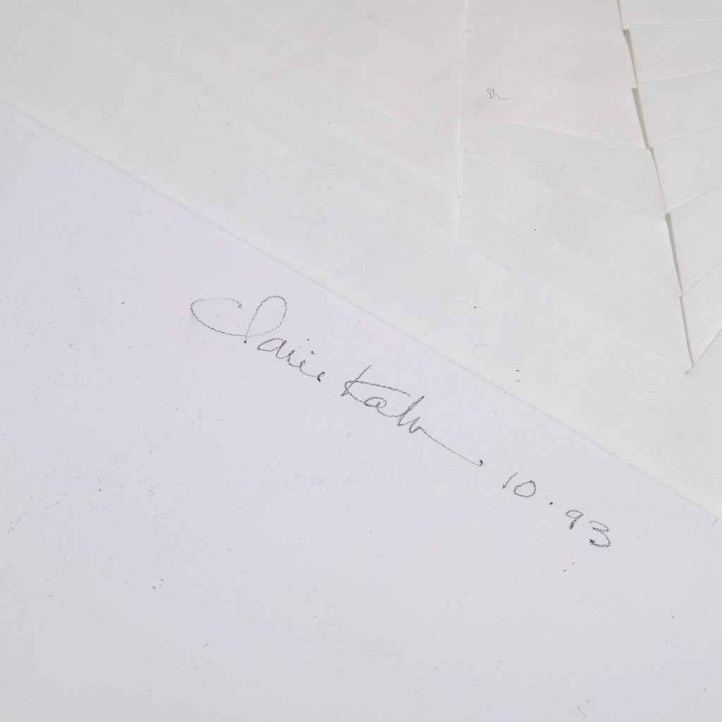 Pigment on paper, cotton mat board, conservation clear acrylic, painted white wood frame