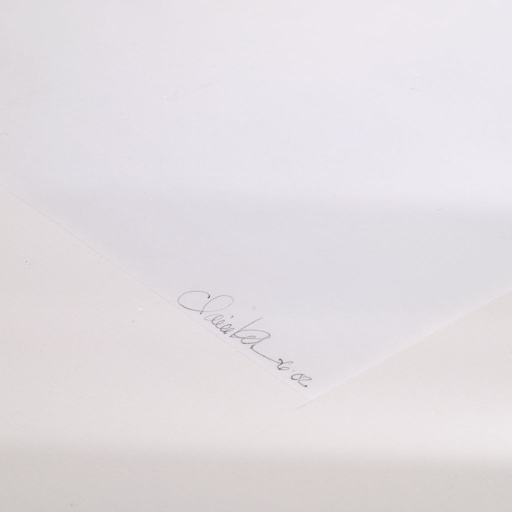Paper, cotton mat board, conservation clear acrylic, painted white wood frame
