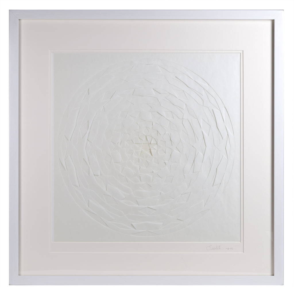 Paper, cotton mat board, conservation clear acrylic, painted white wood frame