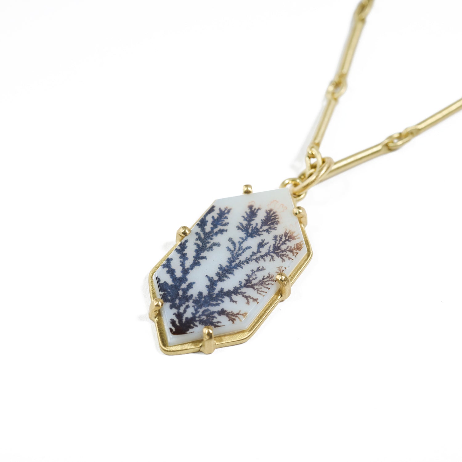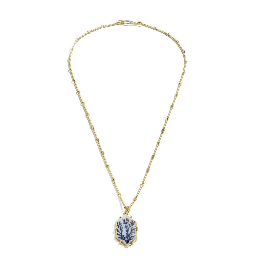As shown with: 19" Gold Bar and Loop Chain, and Diamond and Dendritic Agate Earrings.