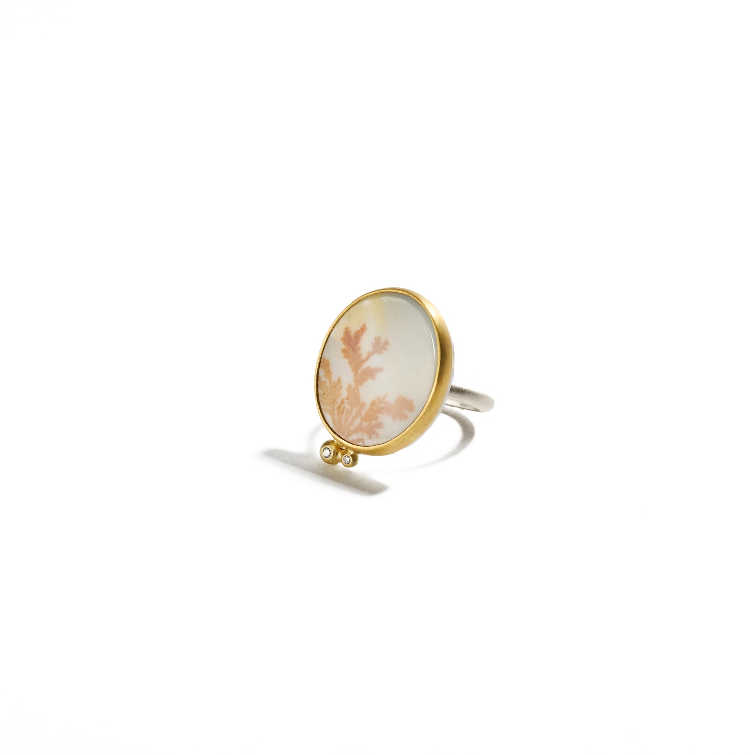 Sterling silver, 18K yellow gold, bezel set dendritic agate 10cts, 2 diamonds 0.03cts total weight