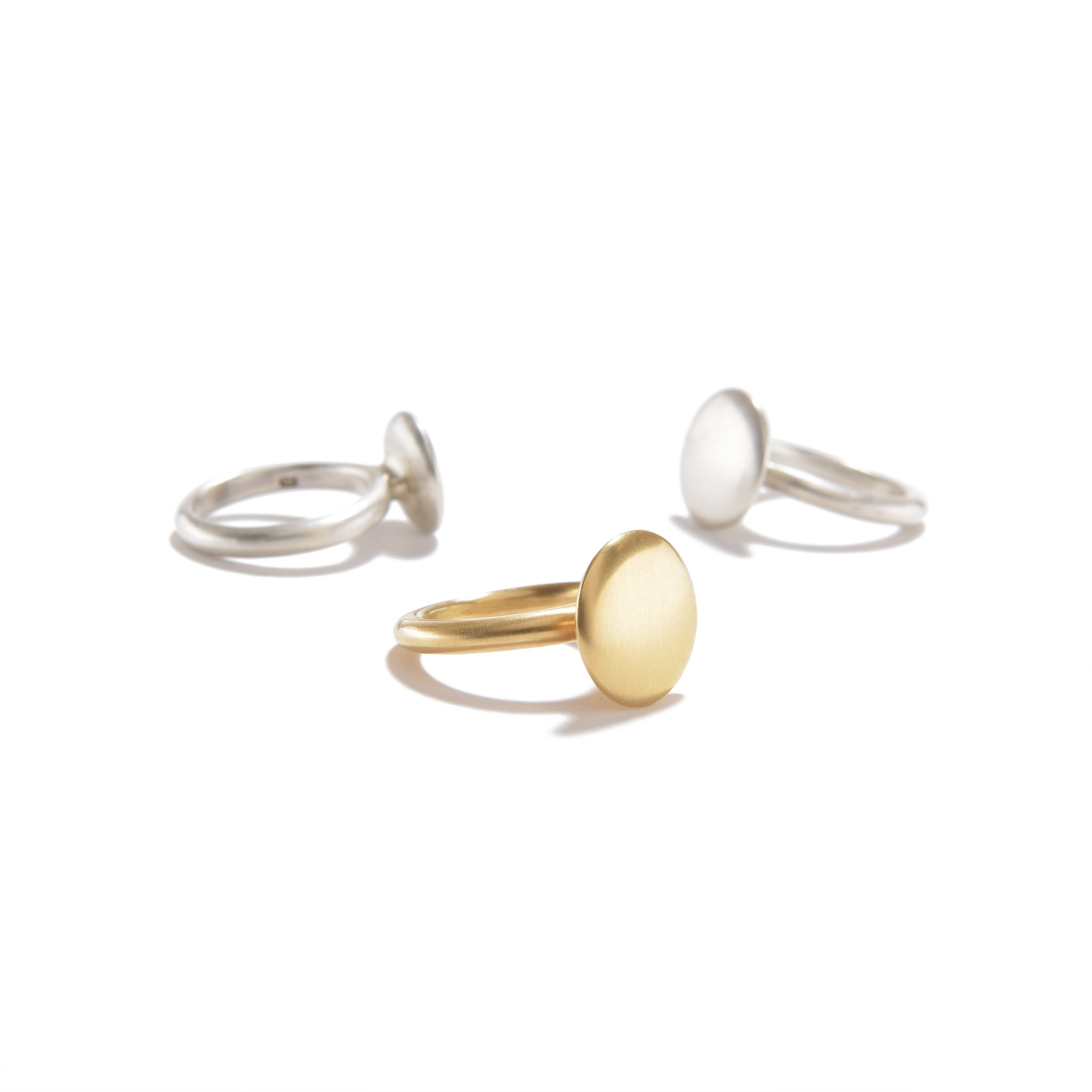 As show with: Large Classic Round Silver Ring, and Small Classic Round Silver Ring.