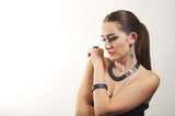 As shown with: Black Niello Necklace, Architectural Drop Earrings, and Pebble Melee Ring II.