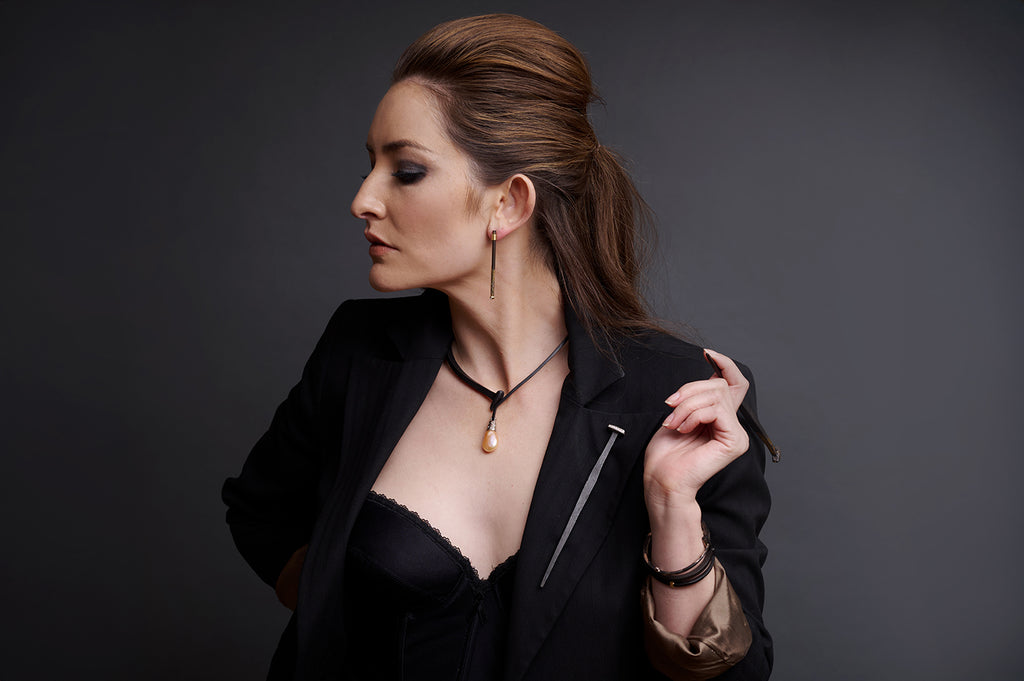 As shown with: Iron Quill and Diamond Sprinkle Earrings, Iron Nail and Pearl Drop Necklace, Top Half Sprinkle Bracelet, Iron Nail and Diamond Finale Bracelet, Palladium Dusted Nail Bracelet, Row of Diamonds Nail Bracelet, Iron Nail and Diamond Head Brooch, Large Diamond Stick Earrings, and Diamond Trio Nail Bracelet.