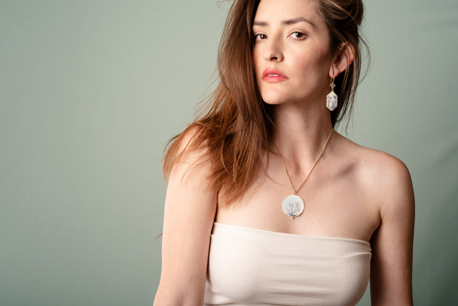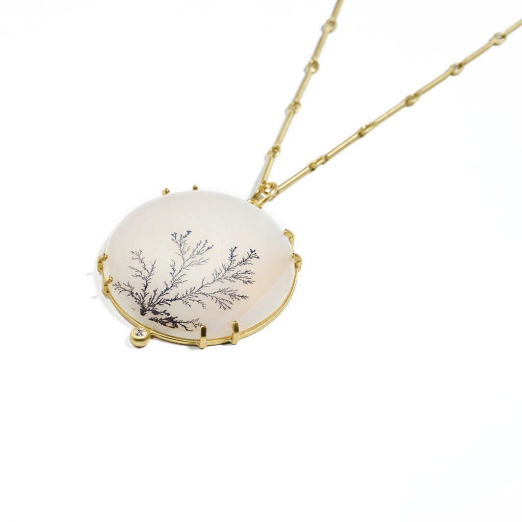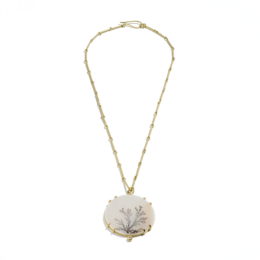 As shown with: 17" Gold Bar and Loop Chain, and Diamond and Dendritic Agate Earrings.