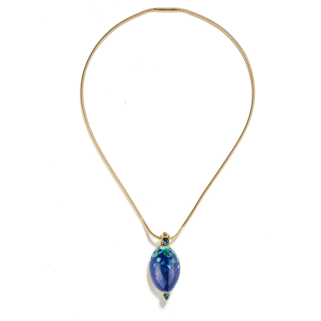 22K & 18K yellow gold, lapis lazuli, turquoise, blue tourmaline, blue zircon