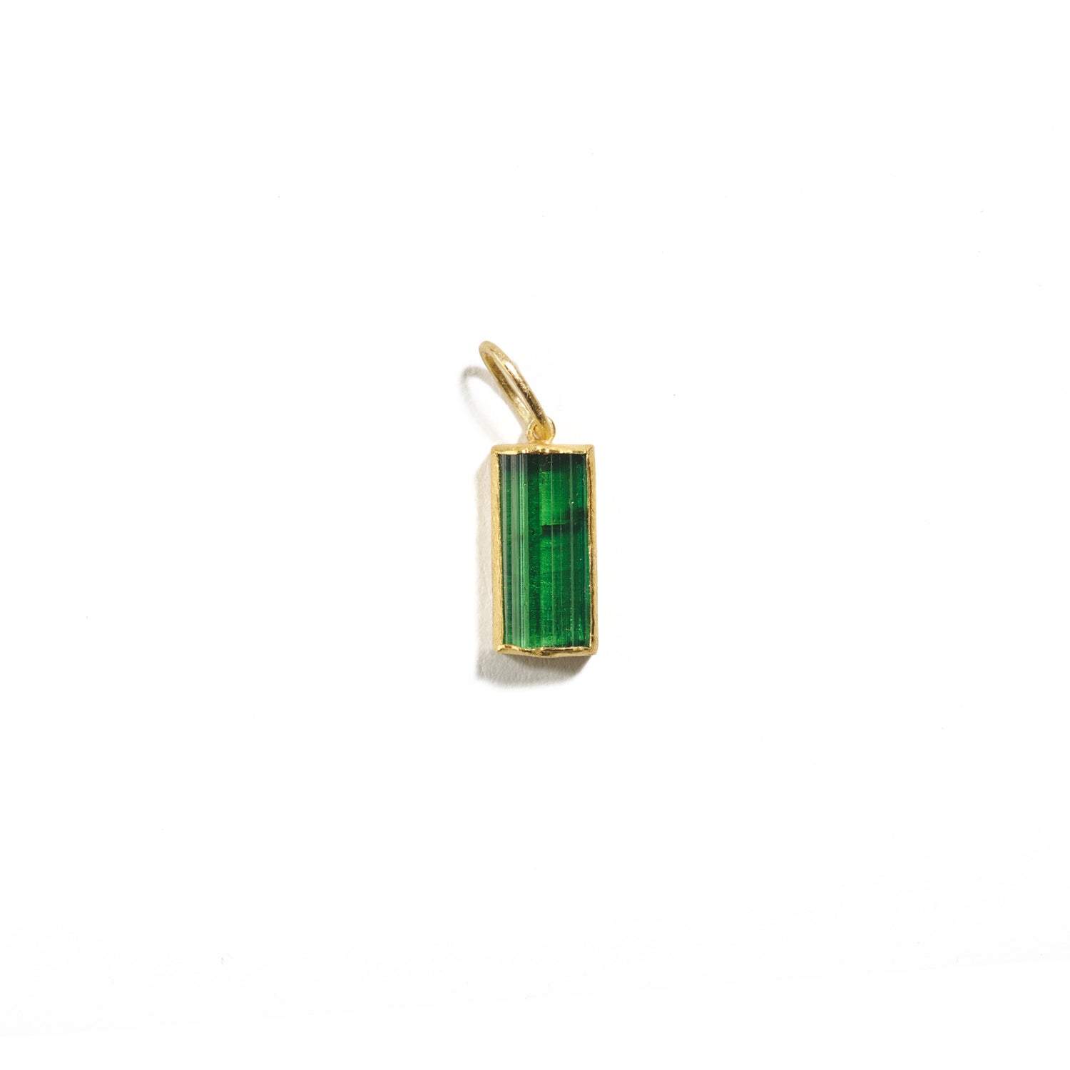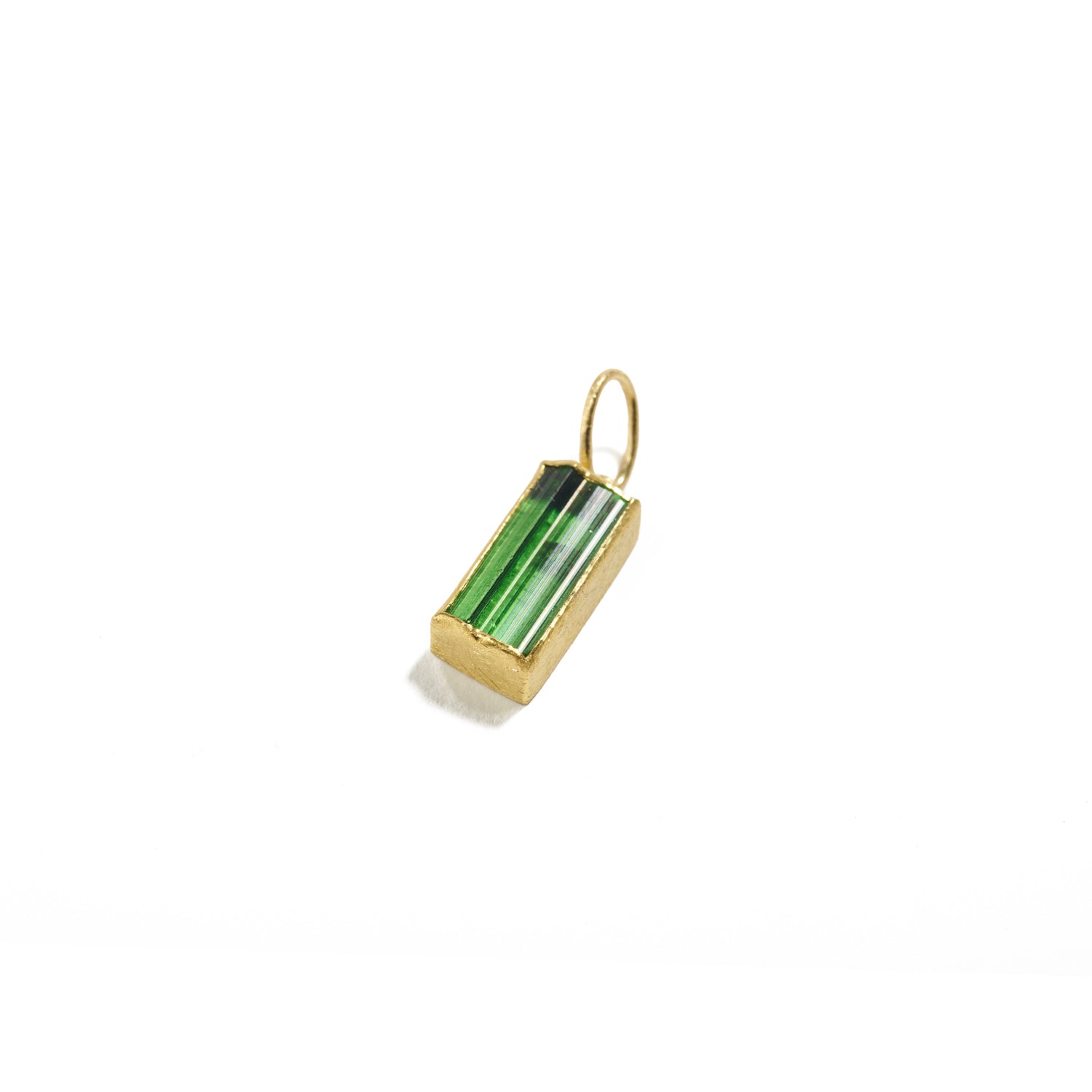 22K & 18K yellow gold, rough cut bezel set green tourmaline