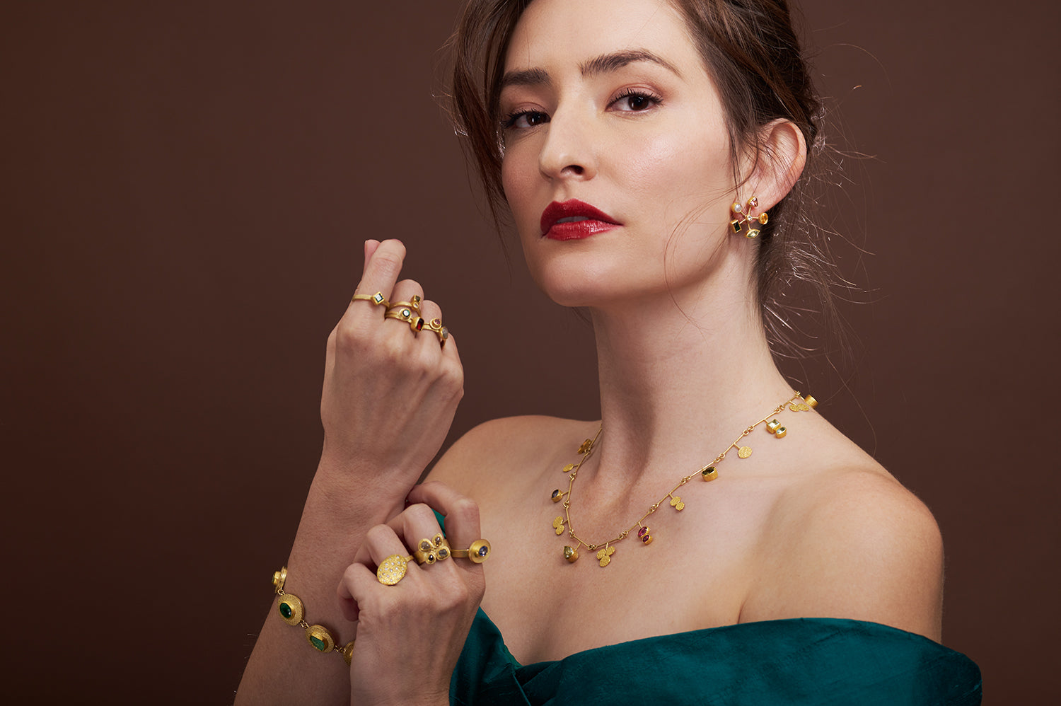 18K & 22K yellow gold, round faceted pink sapphire