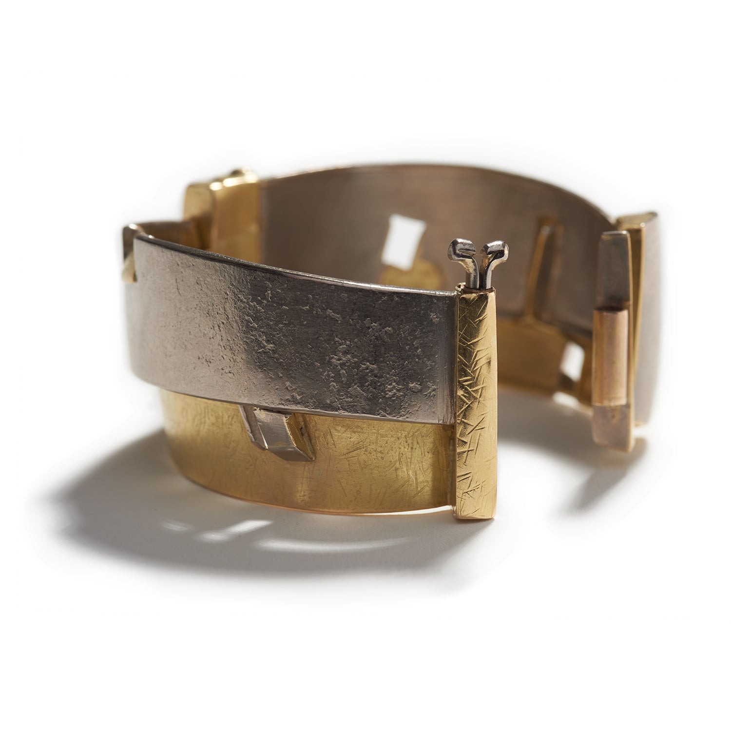 Enjoy this lovely bracelet from the personal trove of the artist, Alexandra Watkins. An abstract webwork of high karat gold composes this elegant composition. This is a one-of-a-kind treasure not easily found and a perfect statement to add to your collection.