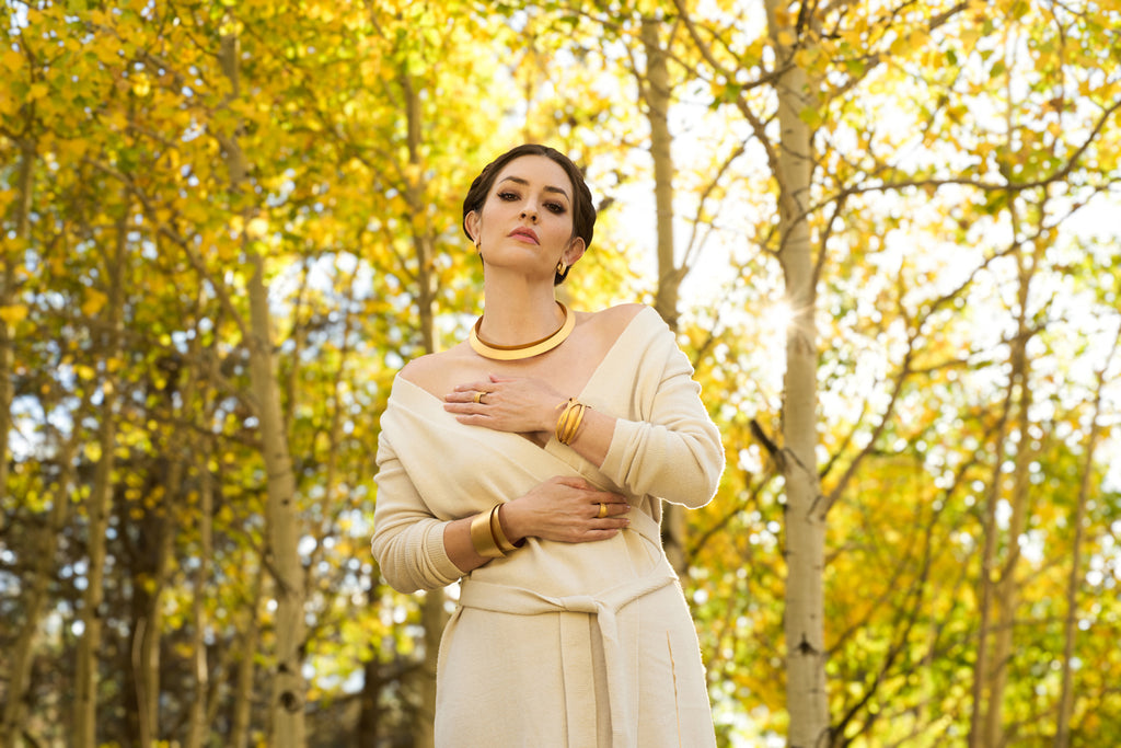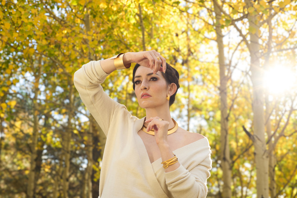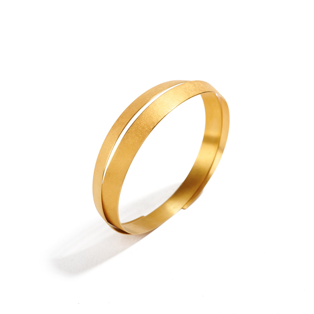 In simple, striking adornment, Ulla & Martin Kaufmann create a deceivingly straight-forward design in high karat gold. However, as true masters of their craft, the artists hammer gold to exacting tension and thickness. Ultimately, they procure what at first is an unfathomable expression in gold that evolves into a complex, multi-faceted work of art. Seamlessly, the piece wraps around the wrist nearly two times for a perfect fit. In every movement and tilt in the light, admire it's perpetually gleaming disposition as its smooth surface becomes a natural extension of the body.