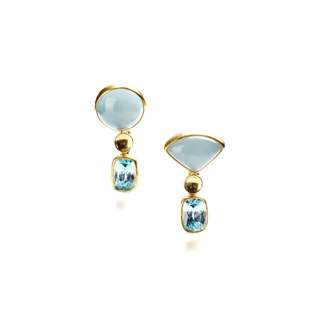 22K & 18K yellow gold, triangluar cabochon-cut aquamarine, rectangular cushion-cut zircon, 5.39 total carat weight