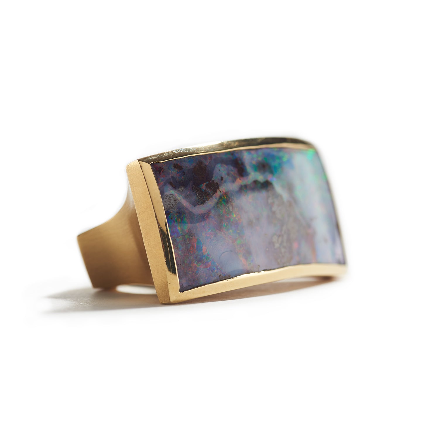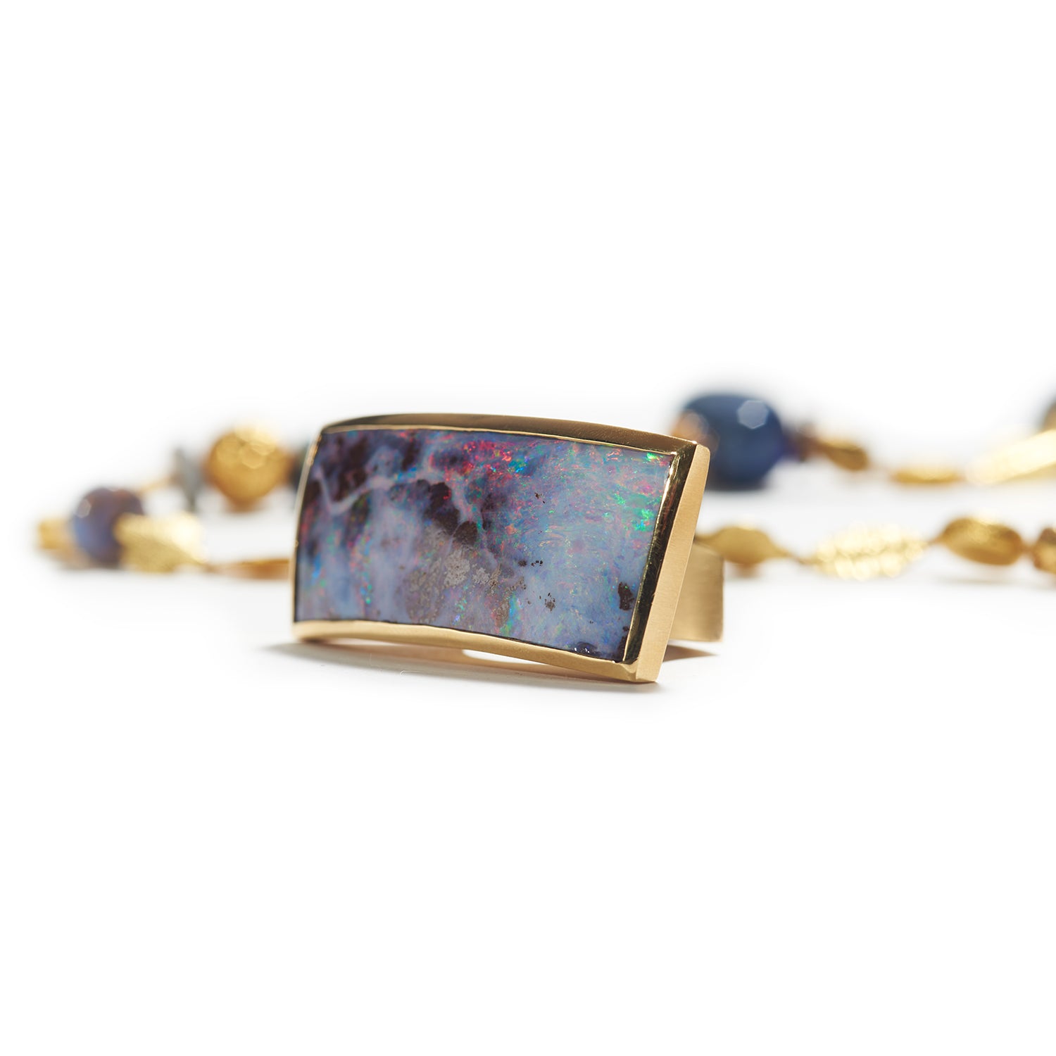 Shown with: Black Opal & Gold Necklace, Black Opal Doublet Drop Earrings, and Black Opal Ring.