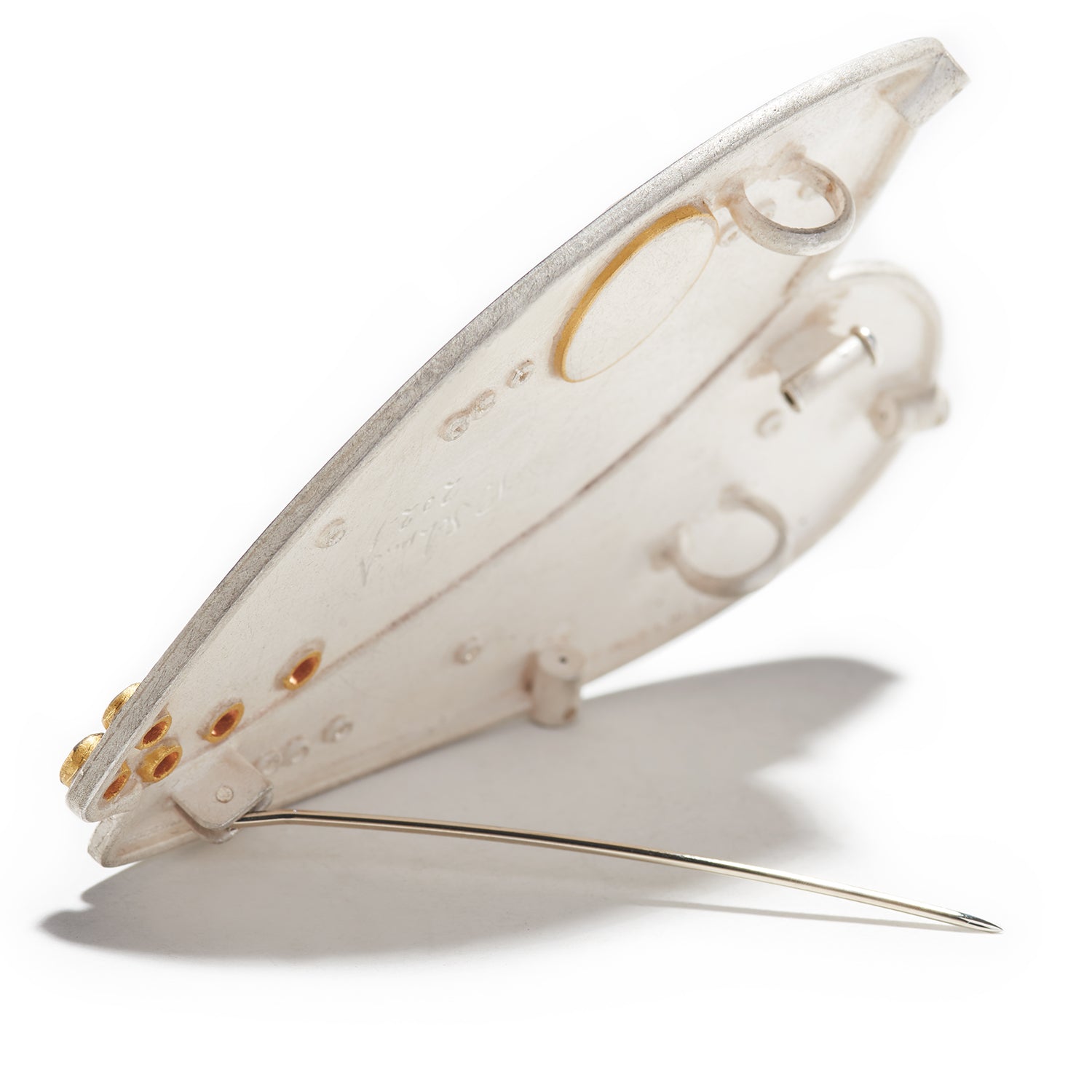 • The brooch has two female vario clasps, to pair as a pendant with a necklace strand with male vario keys in Schmid's collection