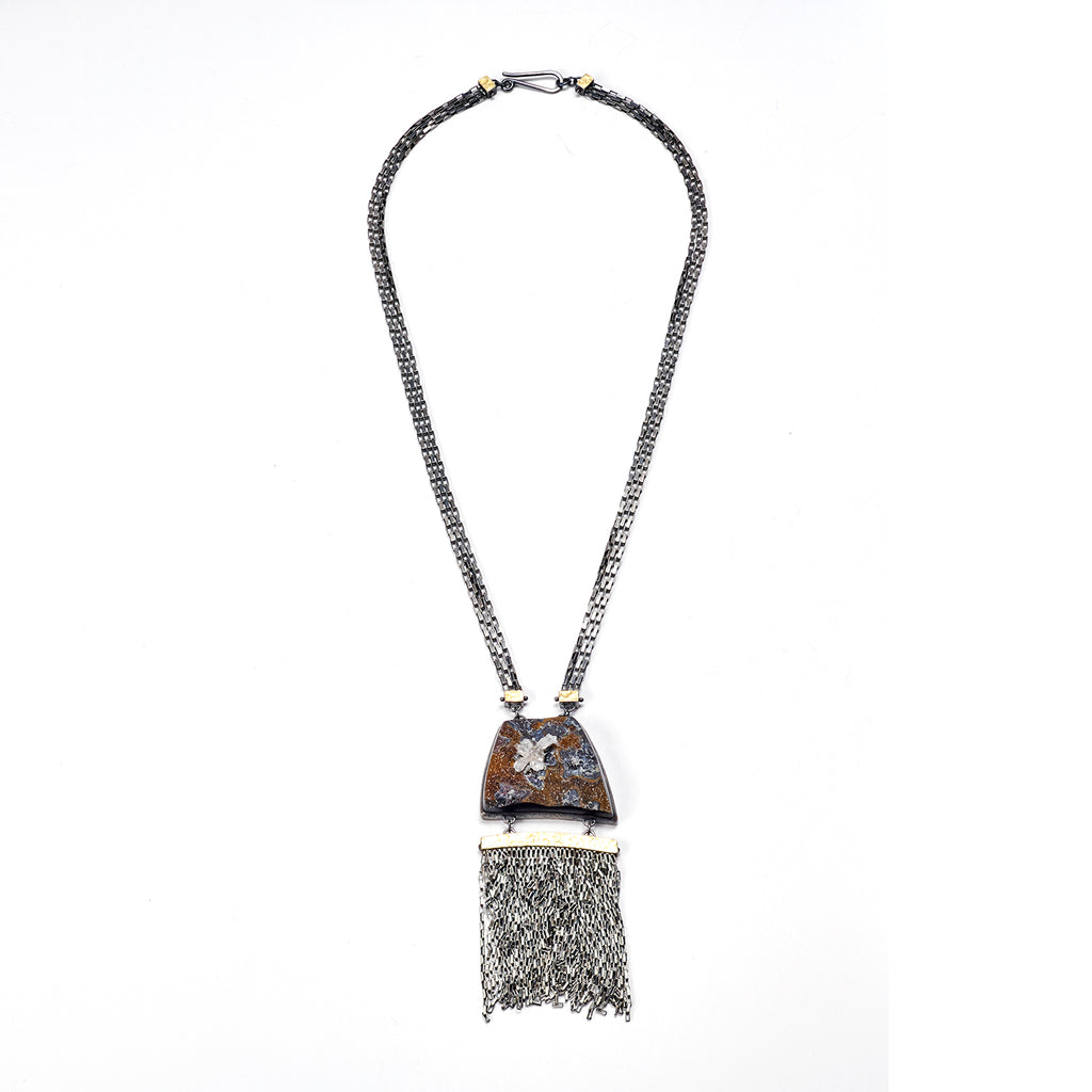 Oxidized sterling silver, druzy, 22K yellow gold