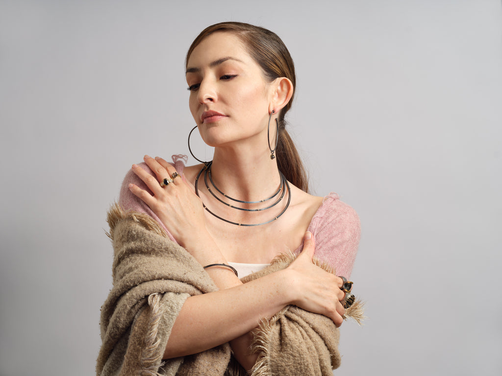 As shown with: Three Strand Necklace, Oxidized Sterling Silver & Diamond Bracelet, Diamond Trio Ring, and Octo Solitaire Diamond Ring.