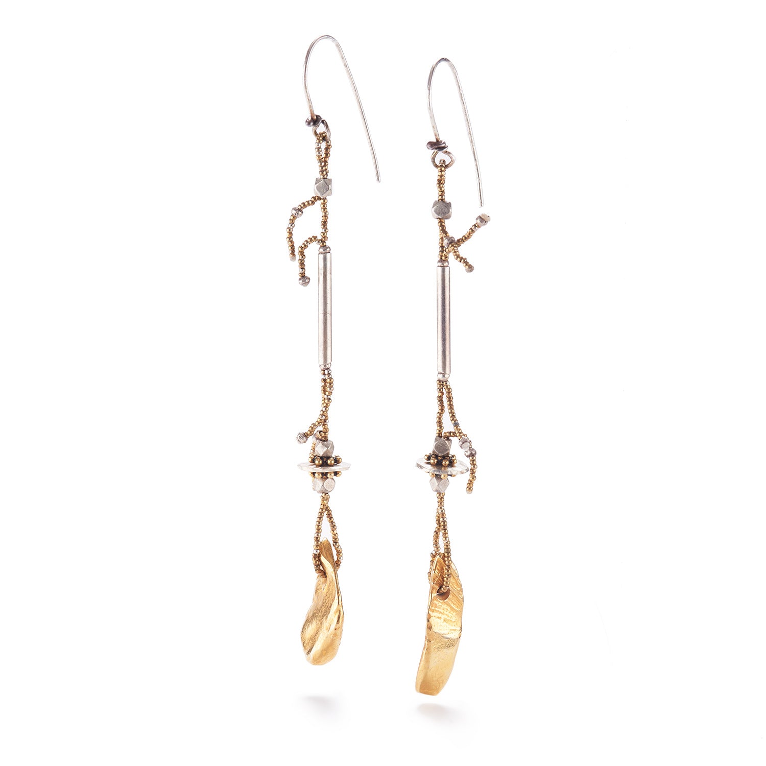 A rare opportunity to own a pair of earrings by legendary artist Lucia Antonelli, handmade with sterling silver ear wires and fall of antique beads with sterling silver and silver vermeil drops.