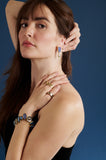 As shown with: Bracelet in Blues, Ring with Brown Rose Cut Diamond, Ring with Golden Yellow Rose Cut Diamond, and Ring with Grey Rose Cut Diamond