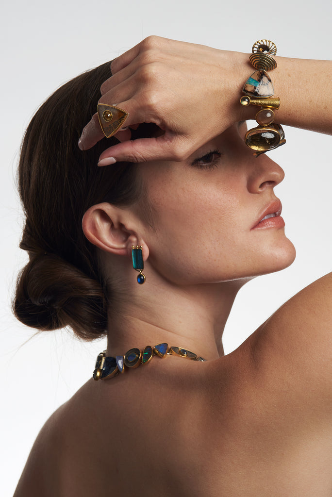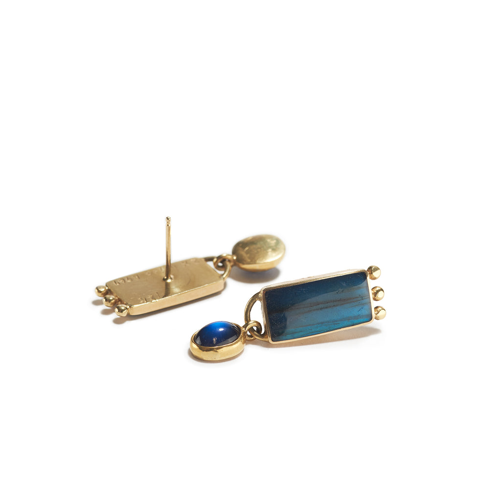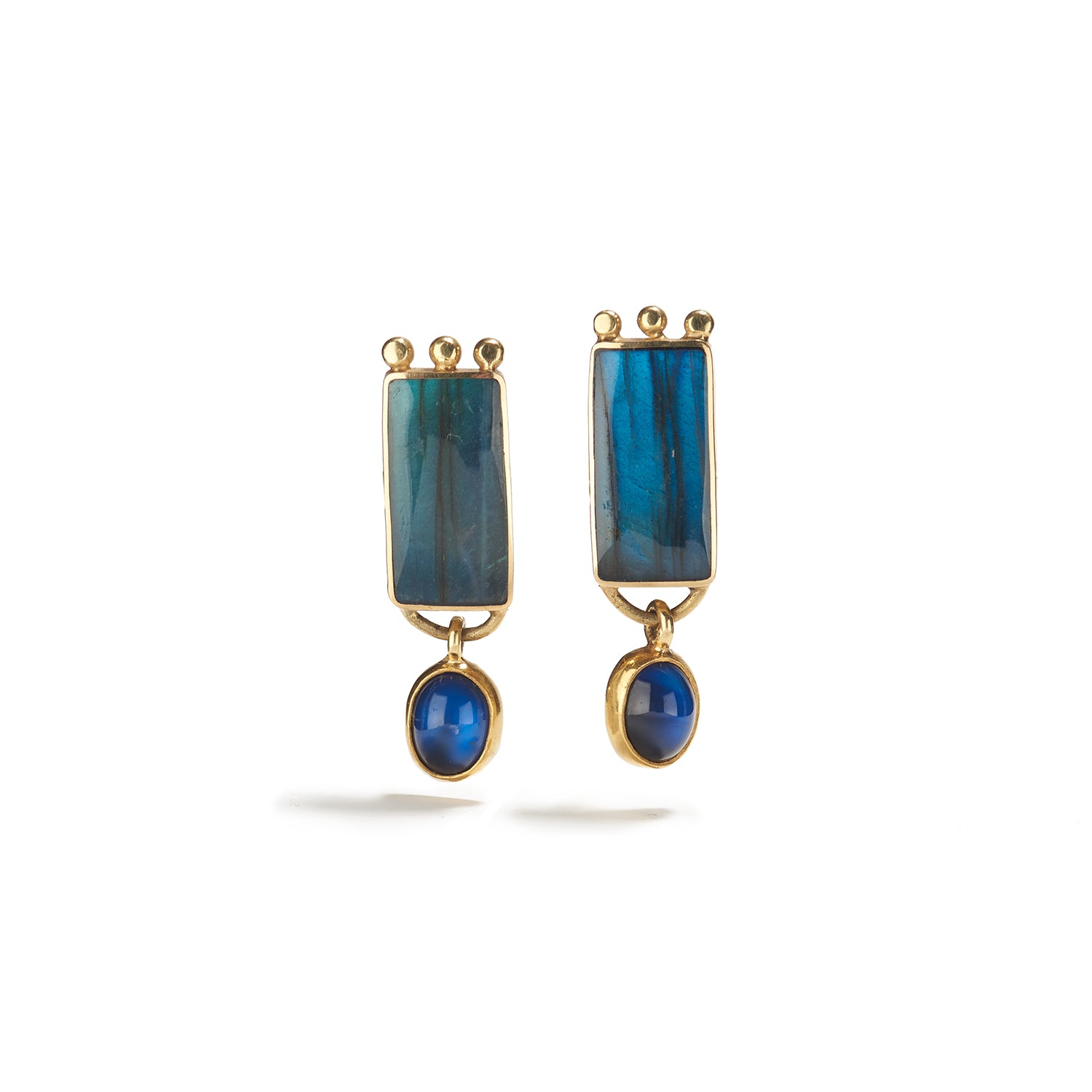 18K yellow gold, inlaid with labradorite and set with moonstones