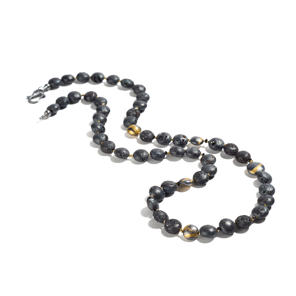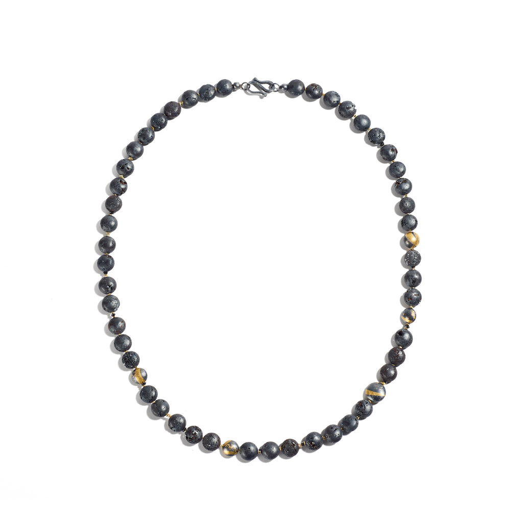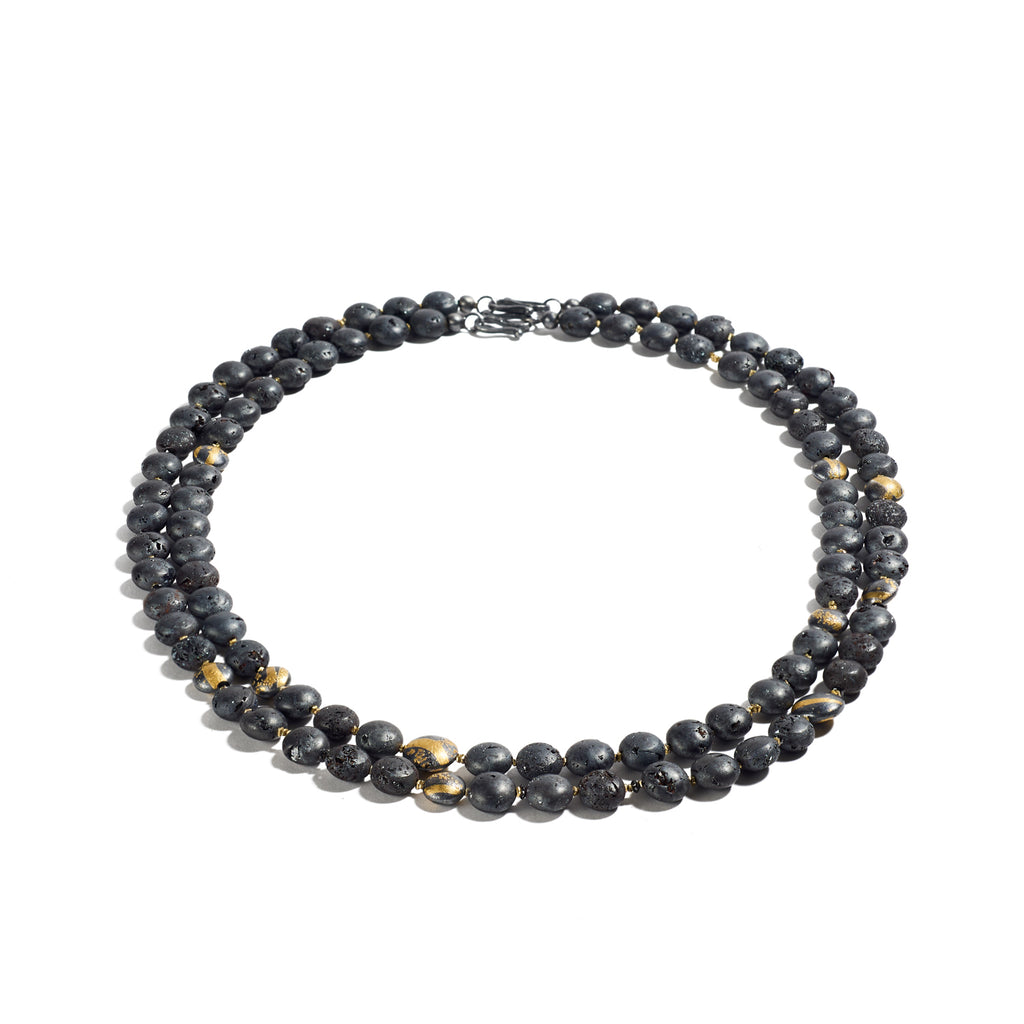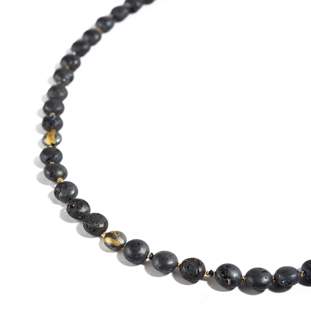 Oxidized sterling silver, fine gold, Elba hematite, black diamonds 0.76cts total weight