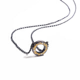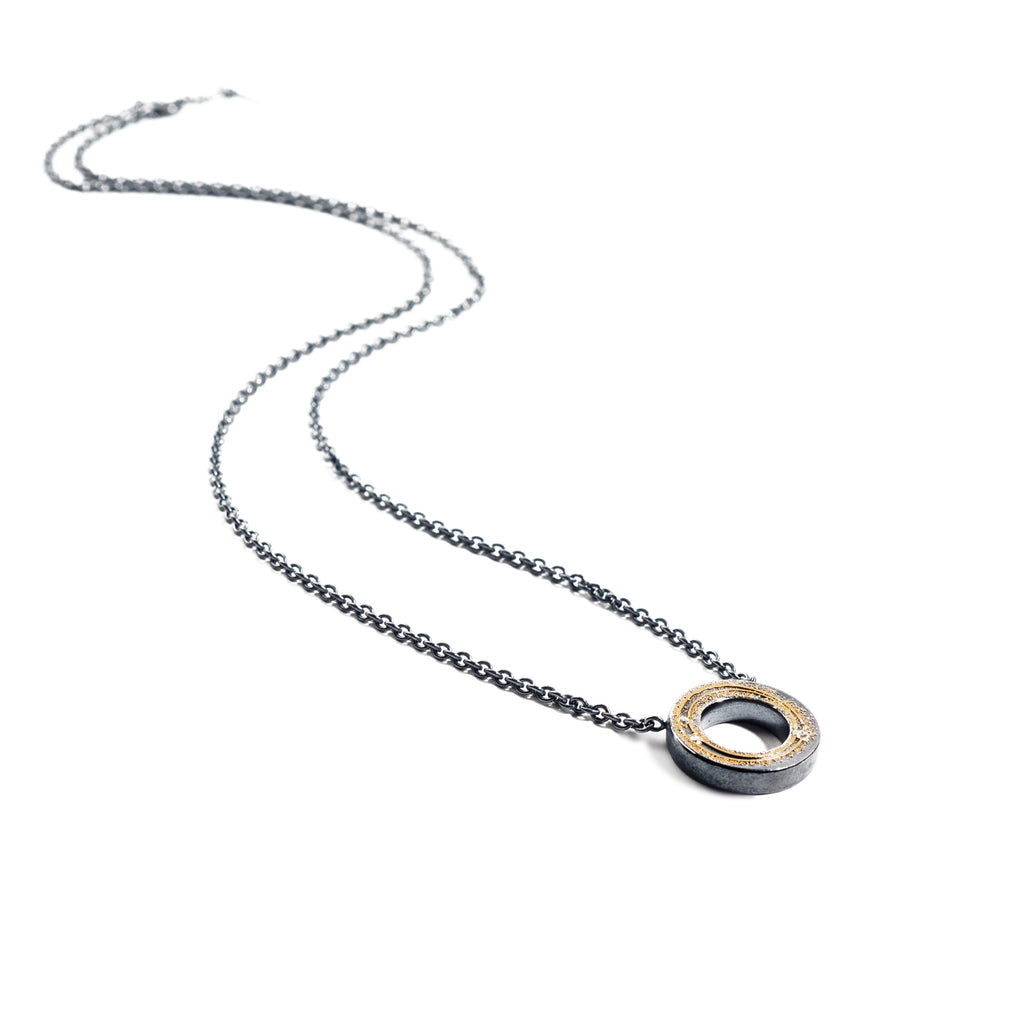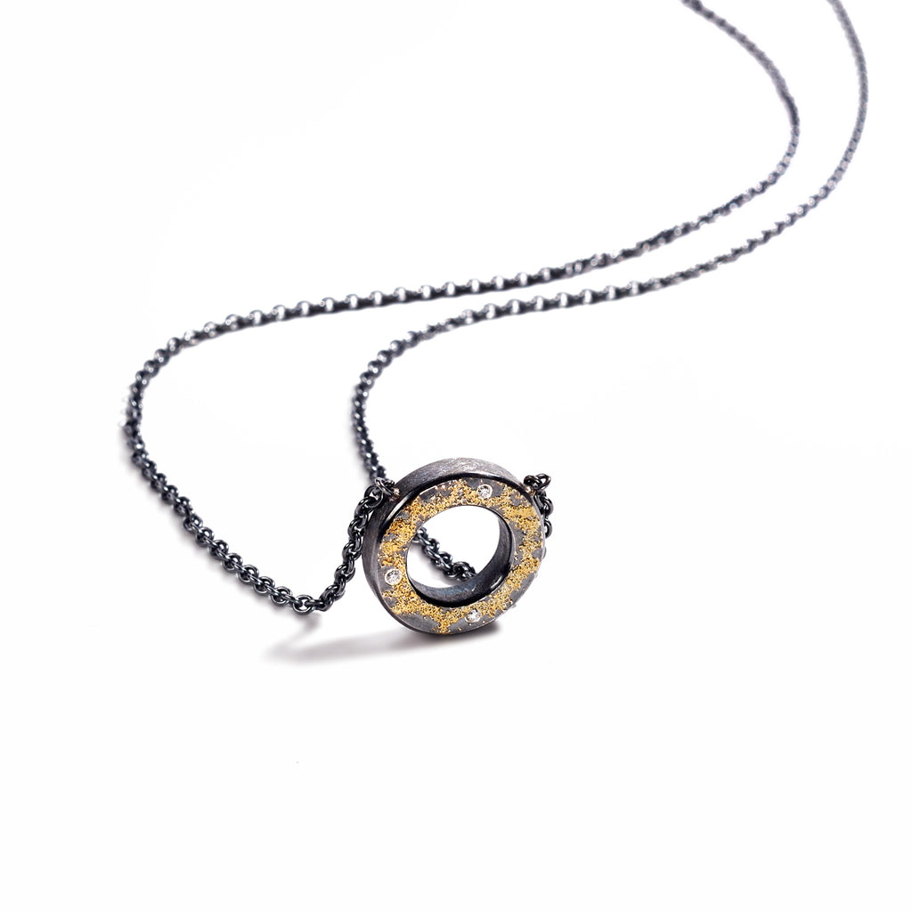 24K yellow gold, oxidized sterling silver, 3 faceted white VS1 diamonds 0.03 total carat weight