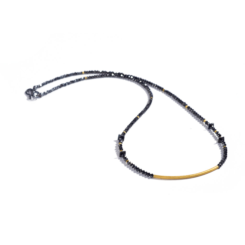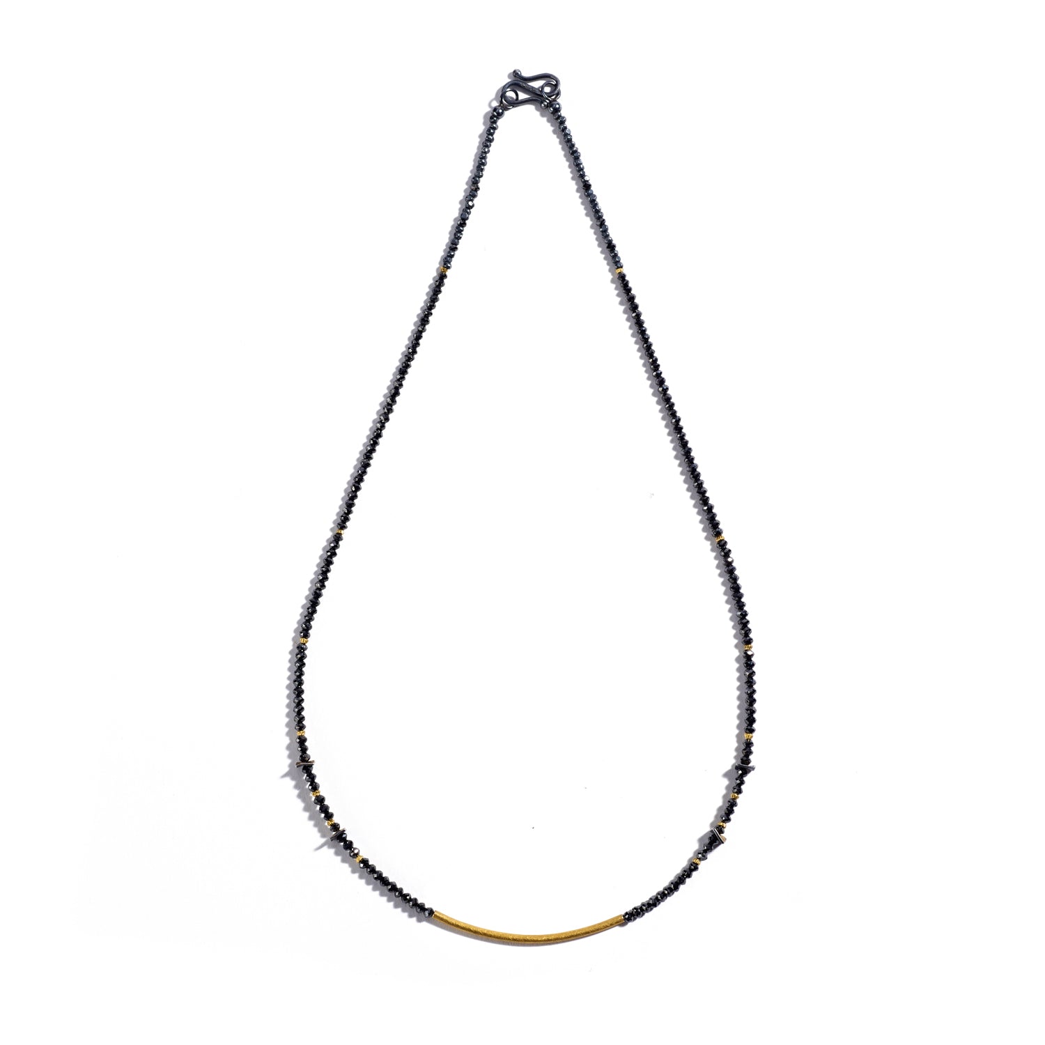 Oxidized sterling silver, 24K yellow gold, black diamonds 11.08 cts total weight