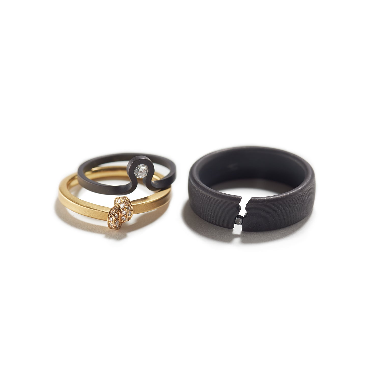 Shown with: Crackle Band with Black Diamond ~7MM and Swing Ring with Diamond ~1.8MM.