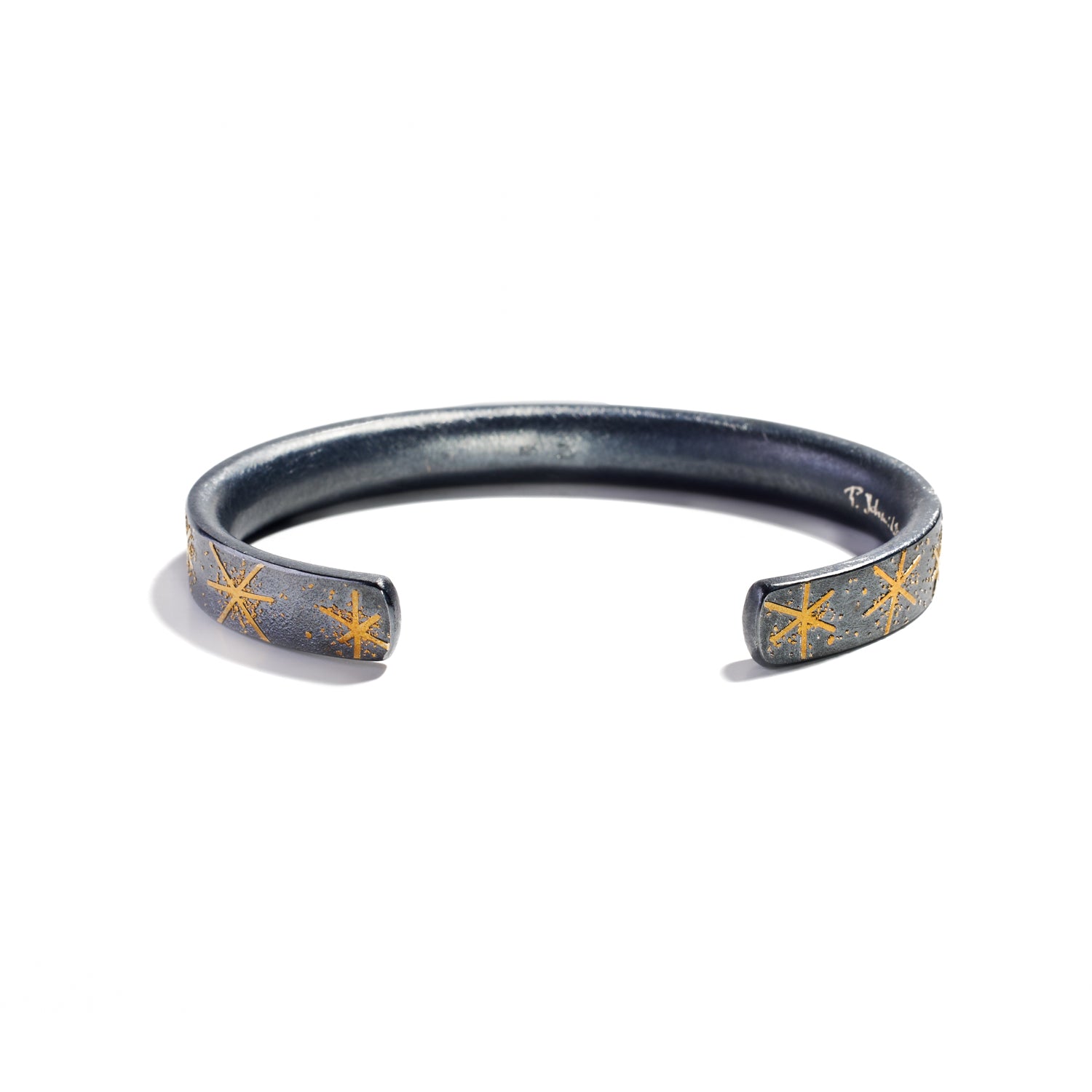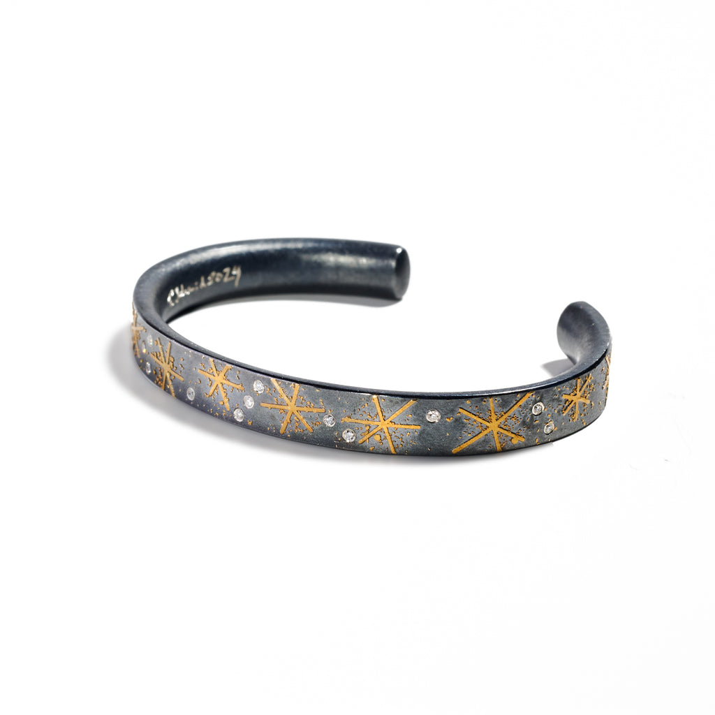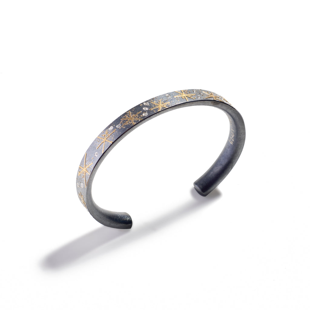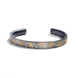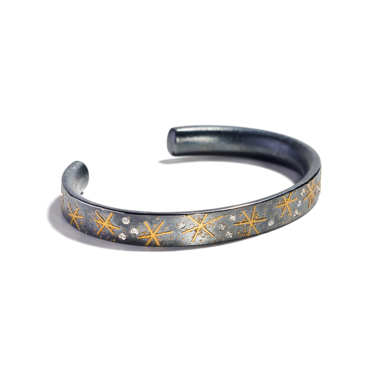 24K yellow gold, oxidized sterling silver, bezel-set faceted white (G) diamonds 0.16cts total weight