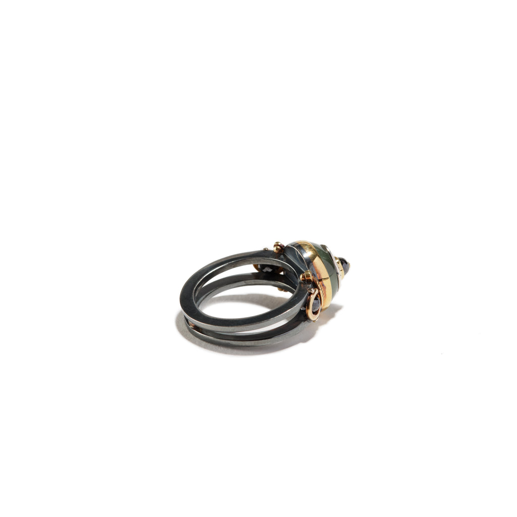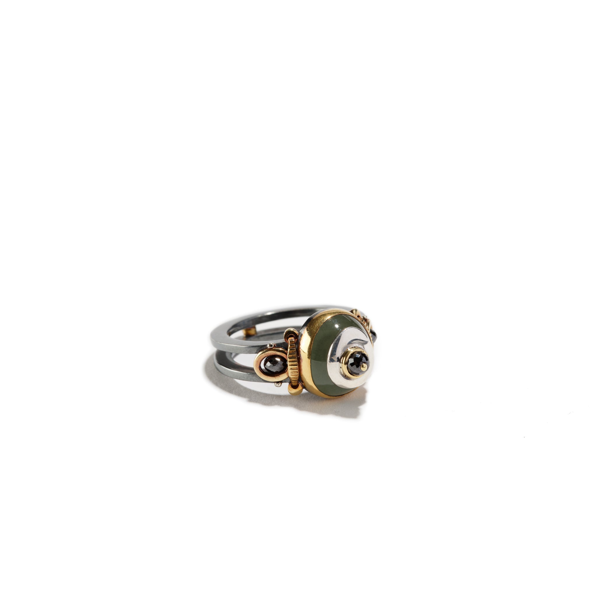 Sterling silver, 22K & 18K yellow gold, green beryl, black diamonds