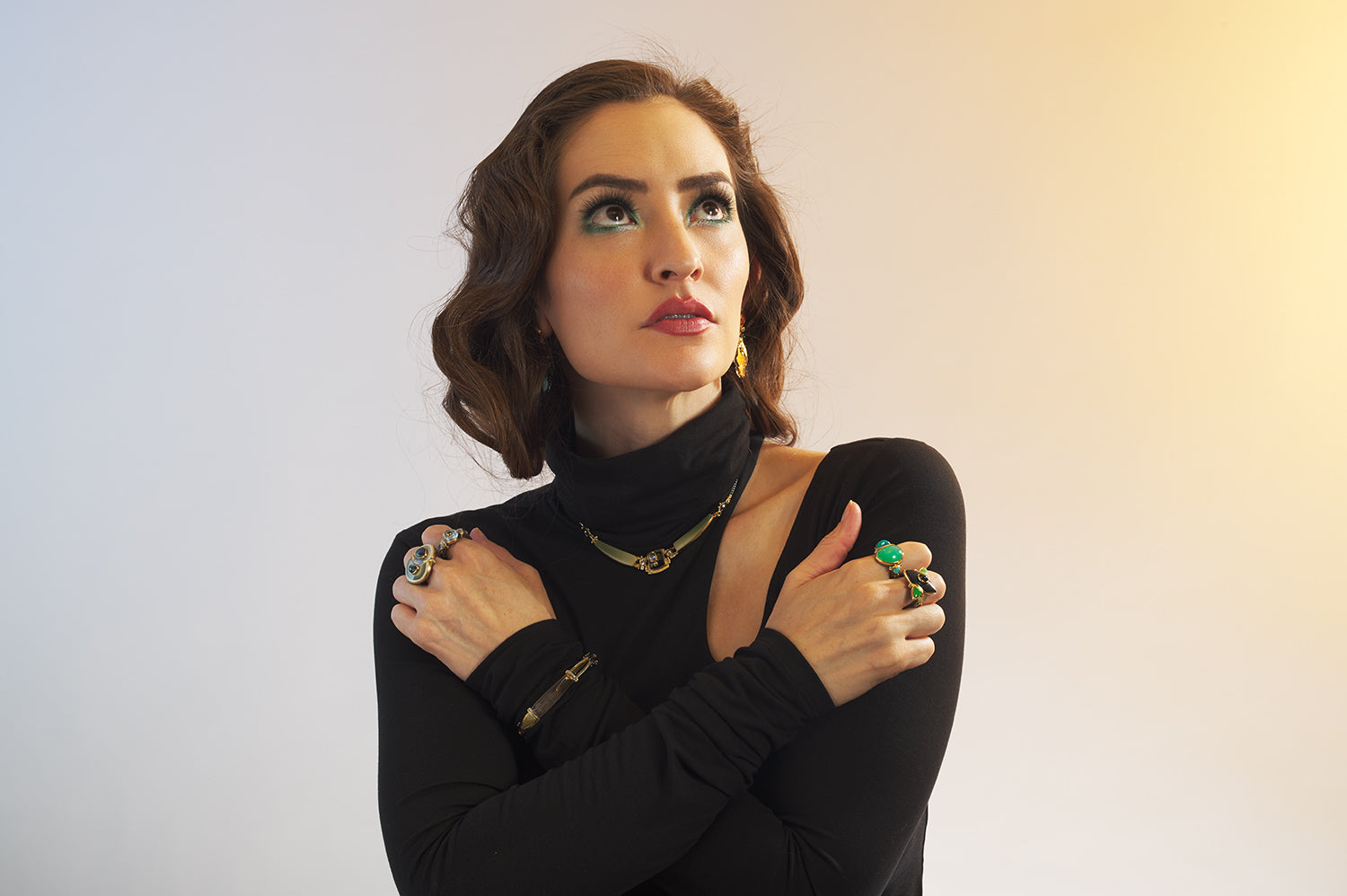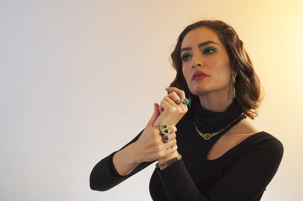 As shown with: Sterling Silver Cuff with Brown Sapphire, Ox Blood Coral Ring in Gold, Black Jade & Sapphire Ring, Chrysoprase & Gem Silica Ring, Umba Valley Sapphire Ring, Psilomelane Ring with Diamonds, Ox Blood Coral Earrings, Royal Imperial Jasper Ring, and Black Jade Cuff with Jasper.