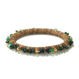 Cylindrical glass beads, chromium diopside, emerald, gold