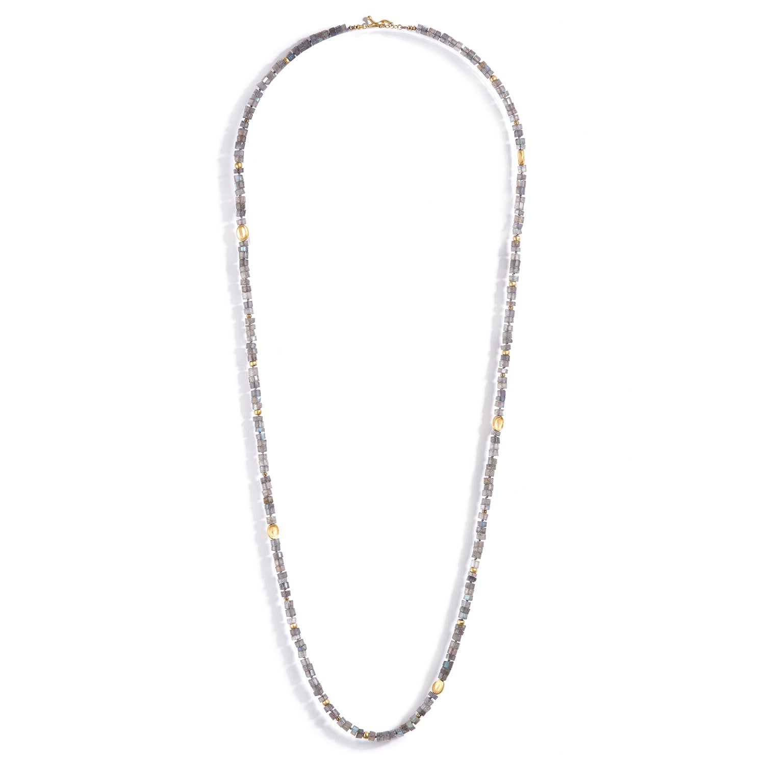 18K yellow gold coffee bean and tiny rimmed and fat puffy spacer beads, faceted labradorite beads