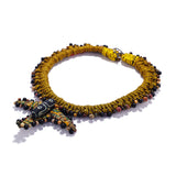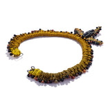 Constructed from paracord and silk, stitched, and embroidered, onyx, red creek jasper, batik agate, glass bead,
