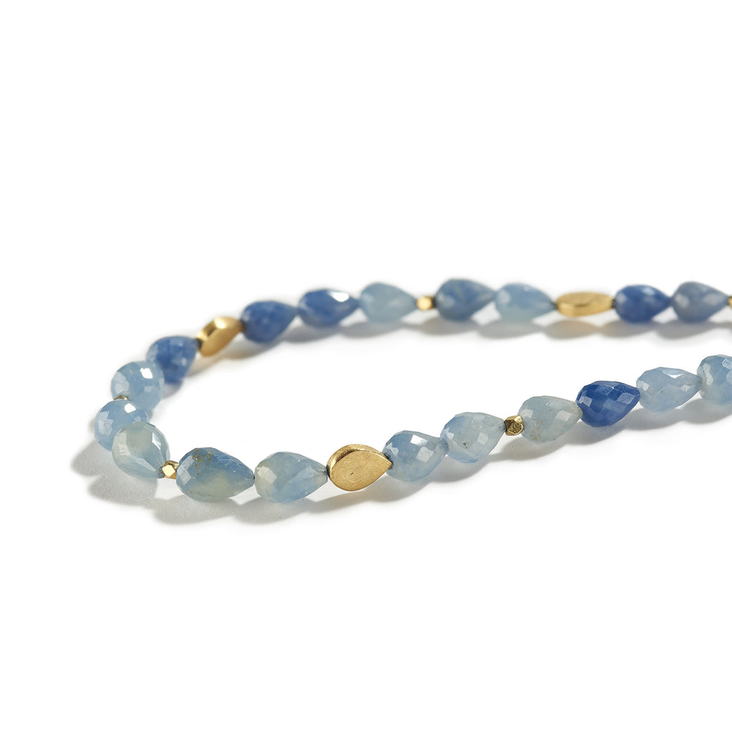 18K yellow gold tear drop shape spacers, light blue sapphire beads 98.45 ctw