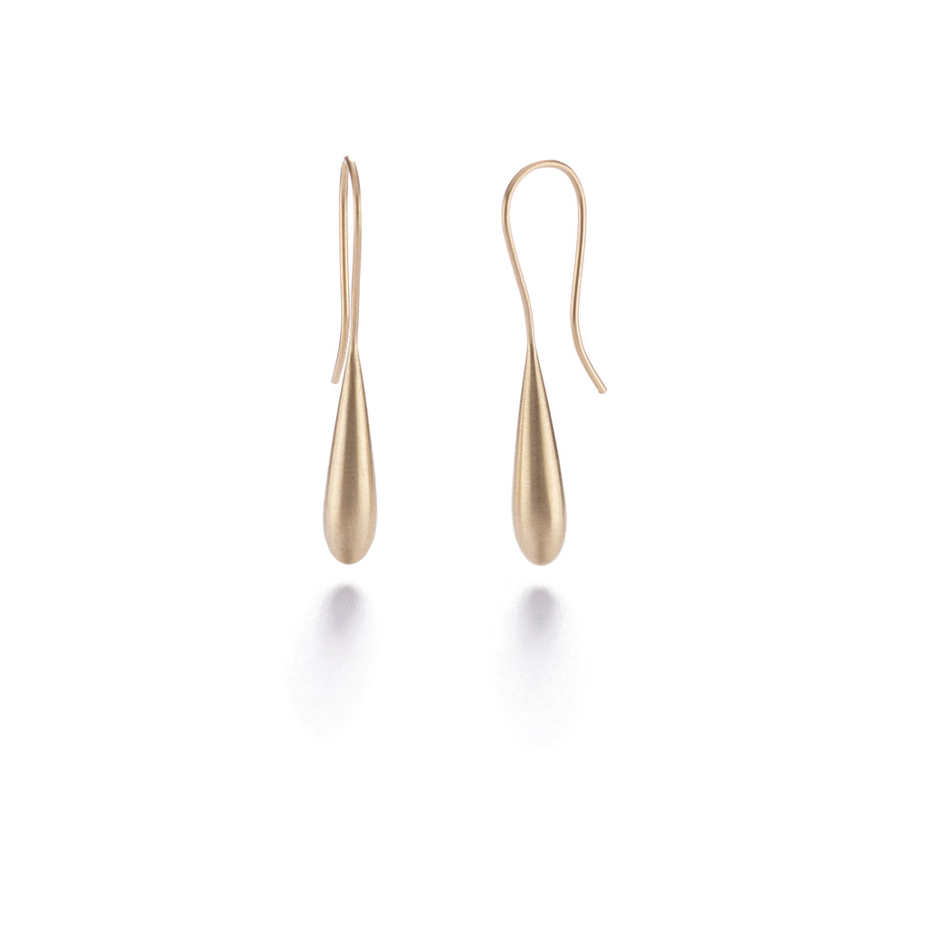 Olivia Shih presents fluid body and elegance to her oeuvre of jewelry works at Patina. Here, she presents her Long Drop Earrings made of recycled high karat gold.