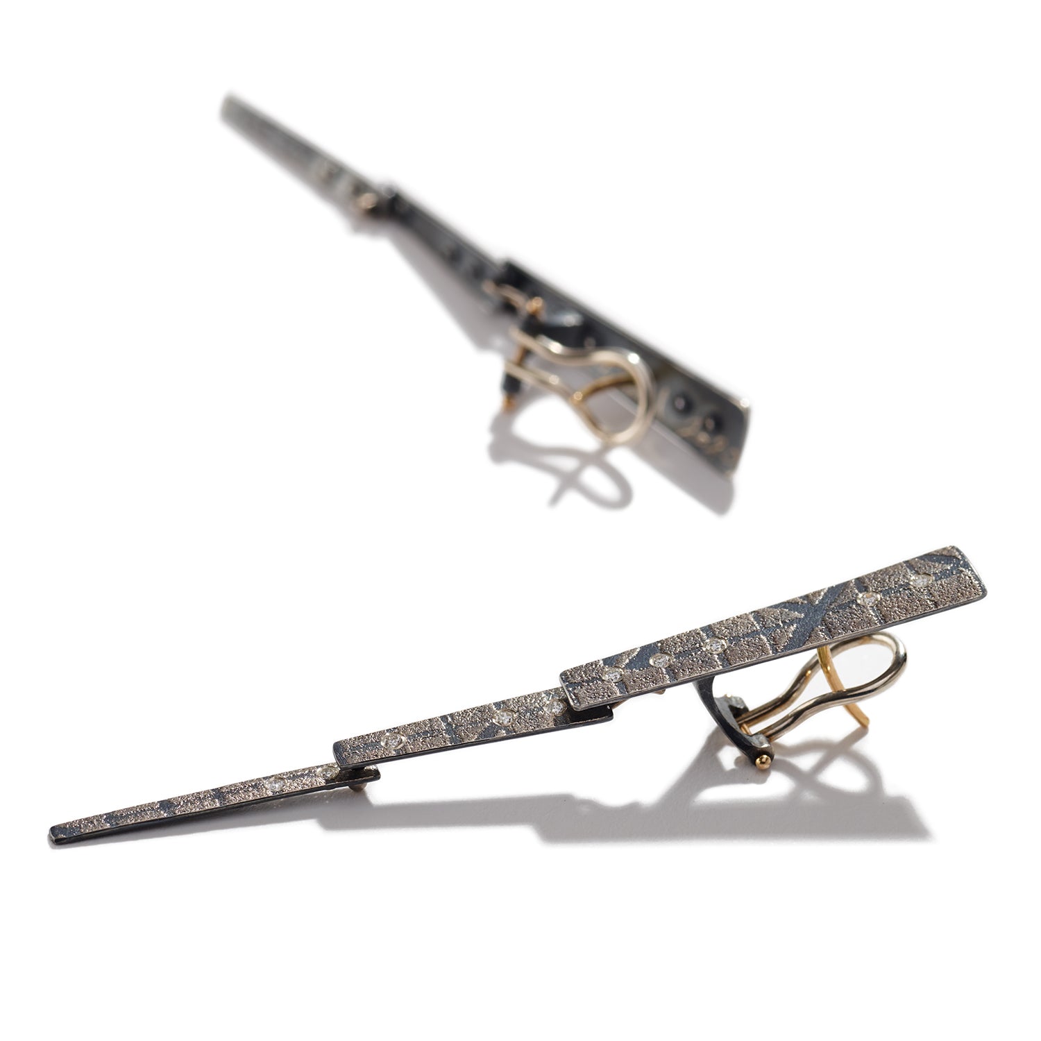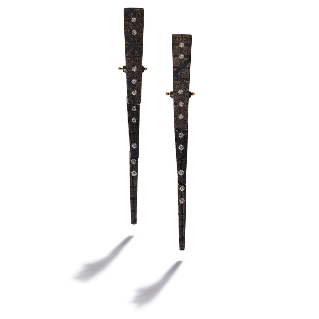 Peter Schmid of Atelier Zobel creates exceptionally elegant earrings that honor this beautiful and lustrous design. In three layers of silver, Schmid expertly carves through his form in streaks of opulent platinum and gold. From these tendrils he sprinkles in an array of sparkling surface-set diamonds. On the body, his exquisite work awakens our souls with a treasure fit for a queen.