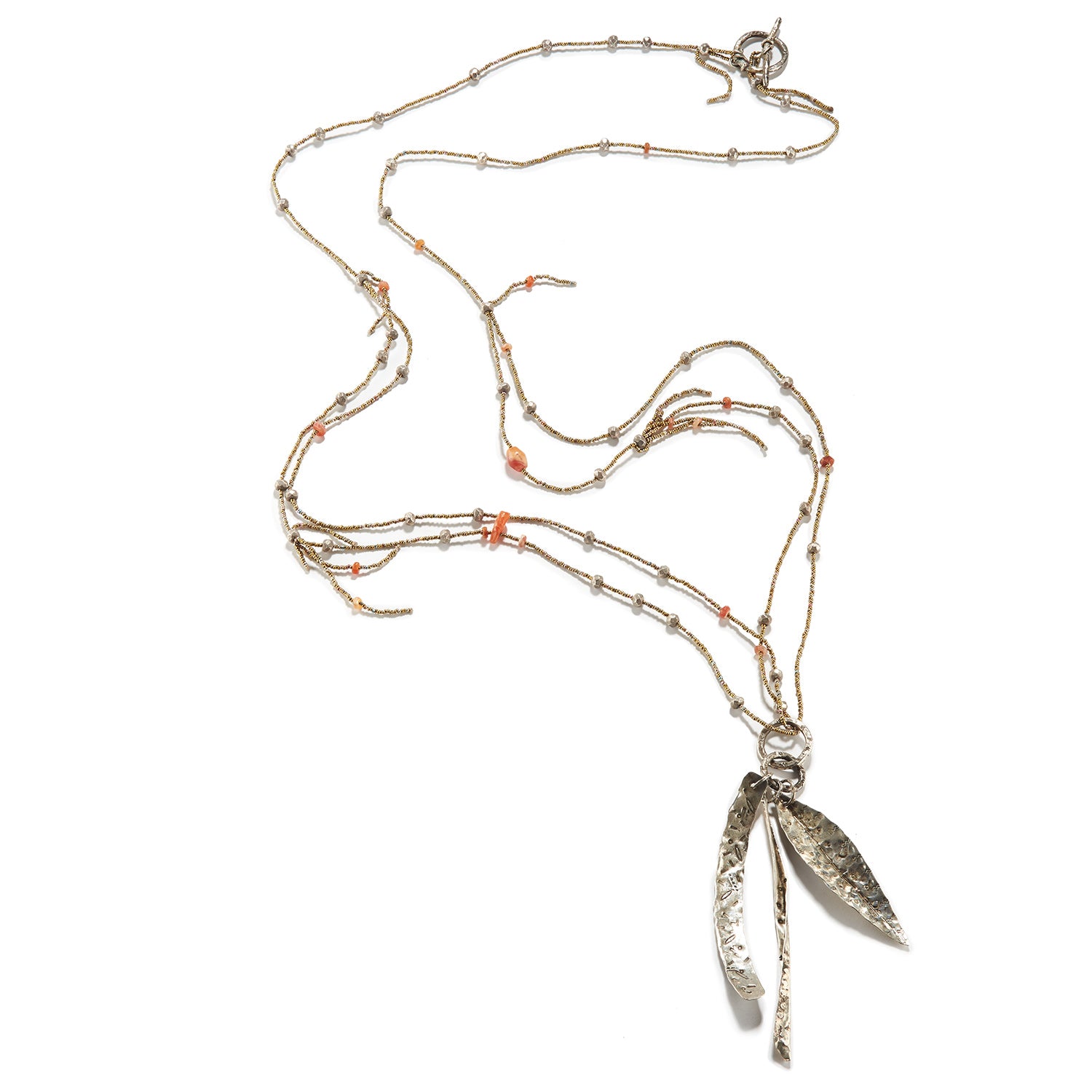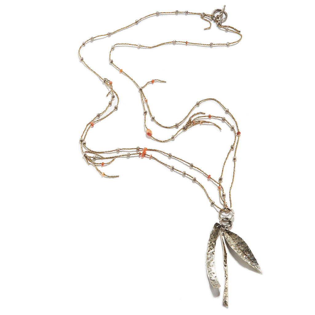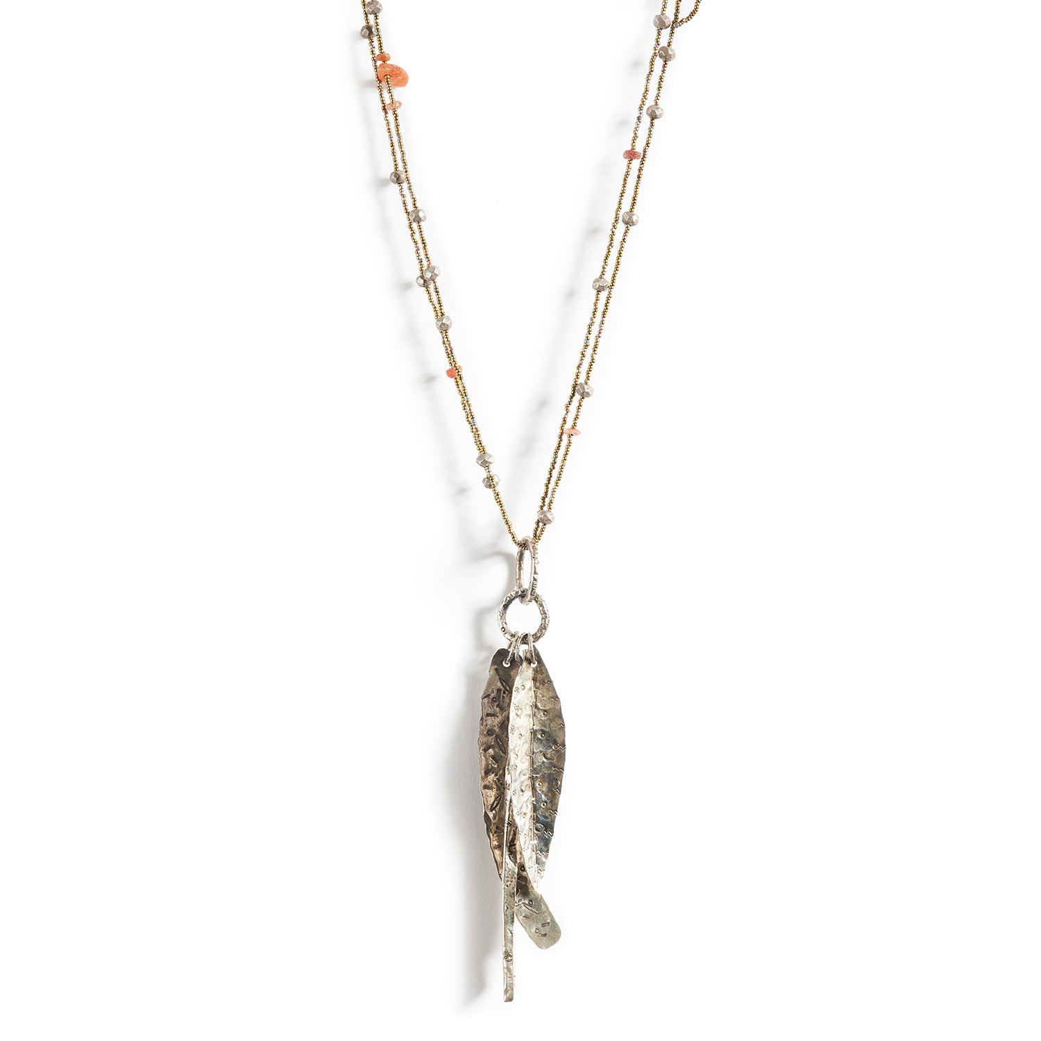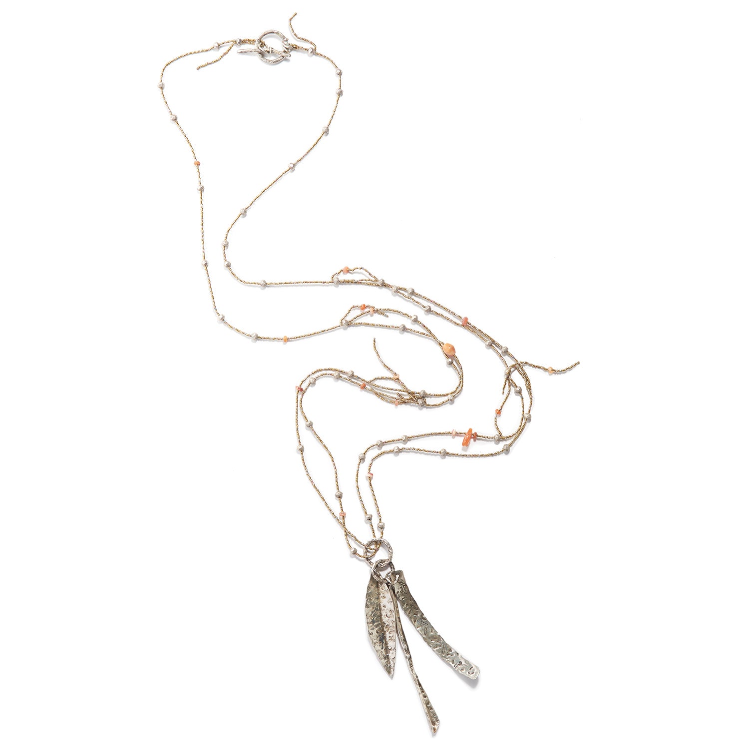 A single strand becomes a double with removable silver pendants, allowing you to wrap it more than once around your neck, or even to adorn your wrist.