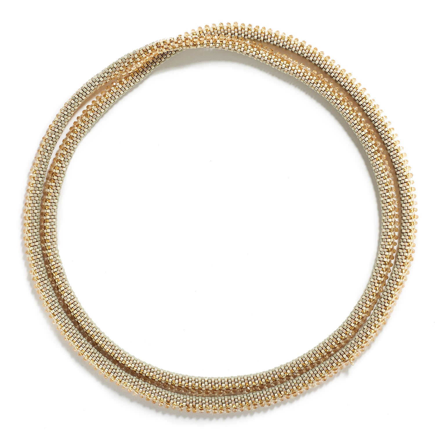 Glorious golden shine manifests to an opulent beacon of November's lustrous beauty, conceptualized by Claire Kahn's exceptional imagination. Amidst a softened palette of metallic white, white and light gray, she cleverly commands its delicate backdrop to propel the incredible shimmer of faceted citrine. Just below the sparkling gems, the maker places gleaming gold nuggets in her progression so that their exquisite surfaces bask in the jeweled reflections at the touch of light. An extraordinary pleasure to behold on the body. Delicate, elegant artistry transforms to impeccably refined design as we keenly subside into fall's peaceful tidings. Quite a work to truly stir the soul.