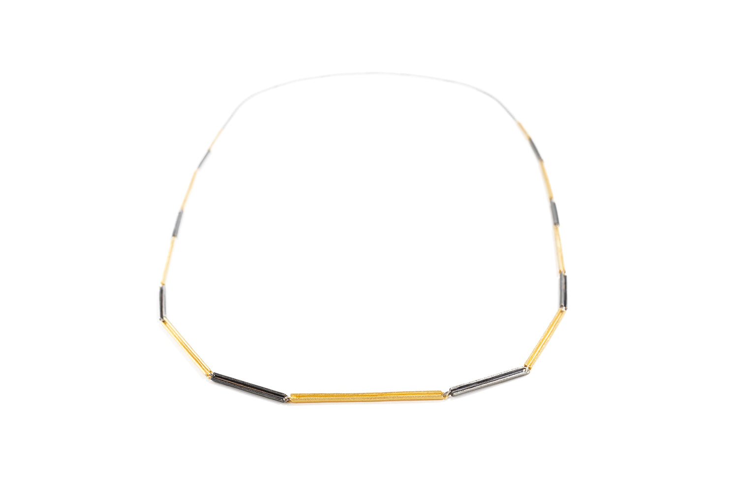 As shown with: Striped Gold Ring and Gold and Oxidized Silver Mesh Bracelet