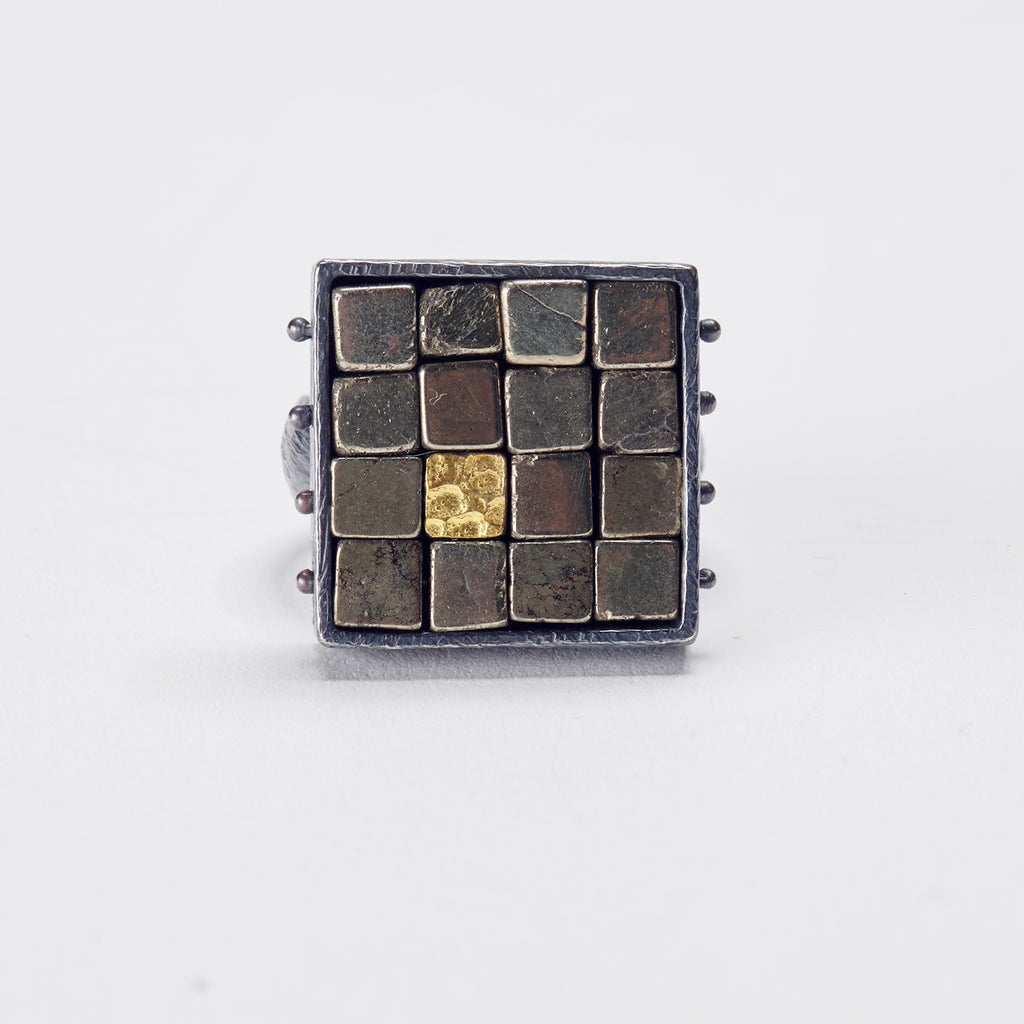 Oxidized sterling silver, 22K yellow gold